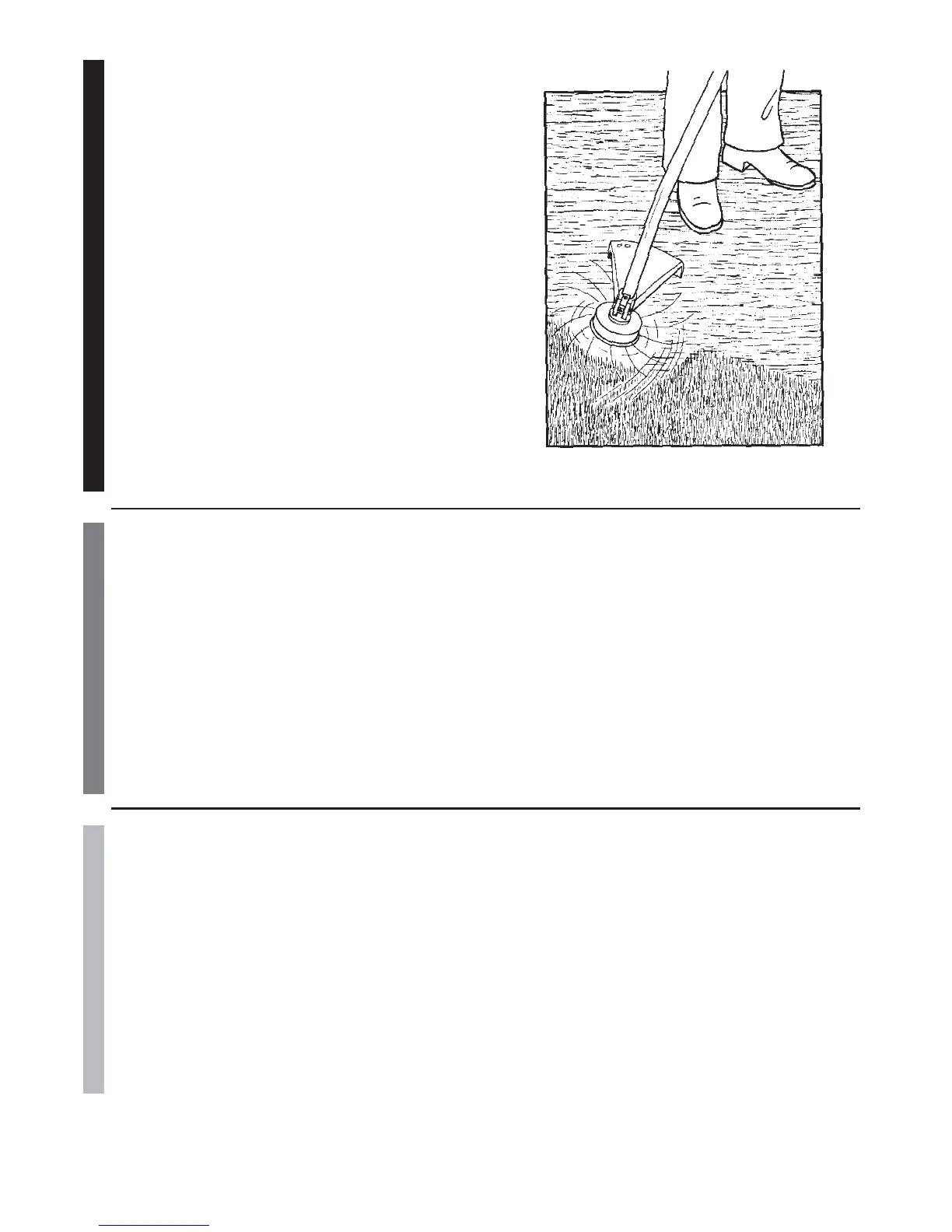 viron 30 degrés. Le réglage de la poignée permettra de mieux contrôler le coupe-herbe pendant cette opération. Ne pas essay-