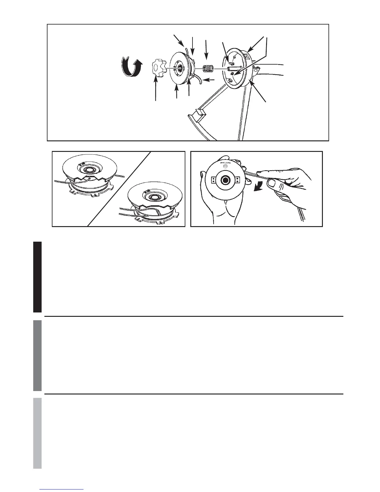 7. Install the spring (D) over the spindle (E). Insert each end of the line through an eyelet (J) in the housing (F) (Figure 8-1E).