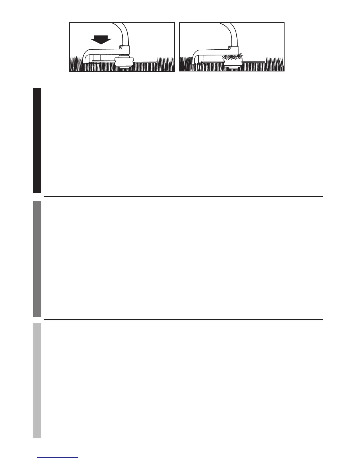 que le dessous de la tête de coupe ne touche le sol. Toujours tondre vers l’avant, ne jamais tirer le coupe-herbe à soi.