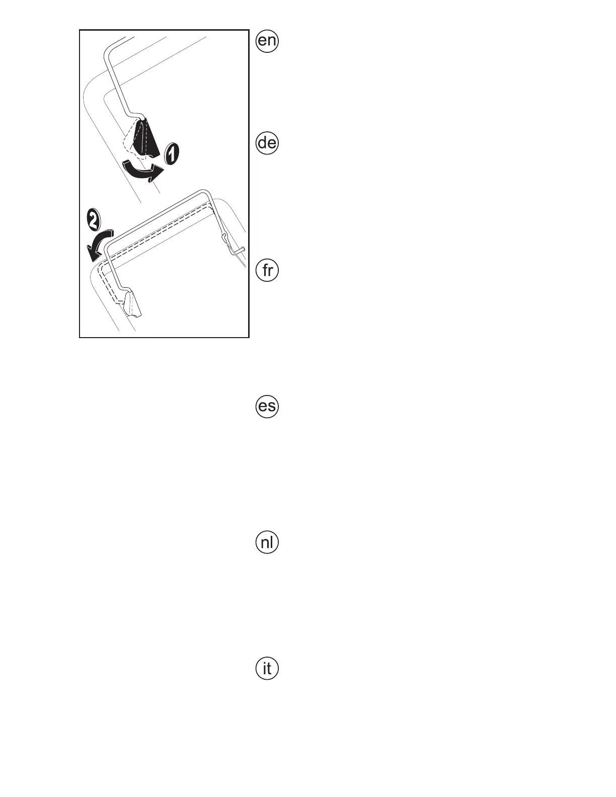 naar de hendel (2) omlaag duwen.