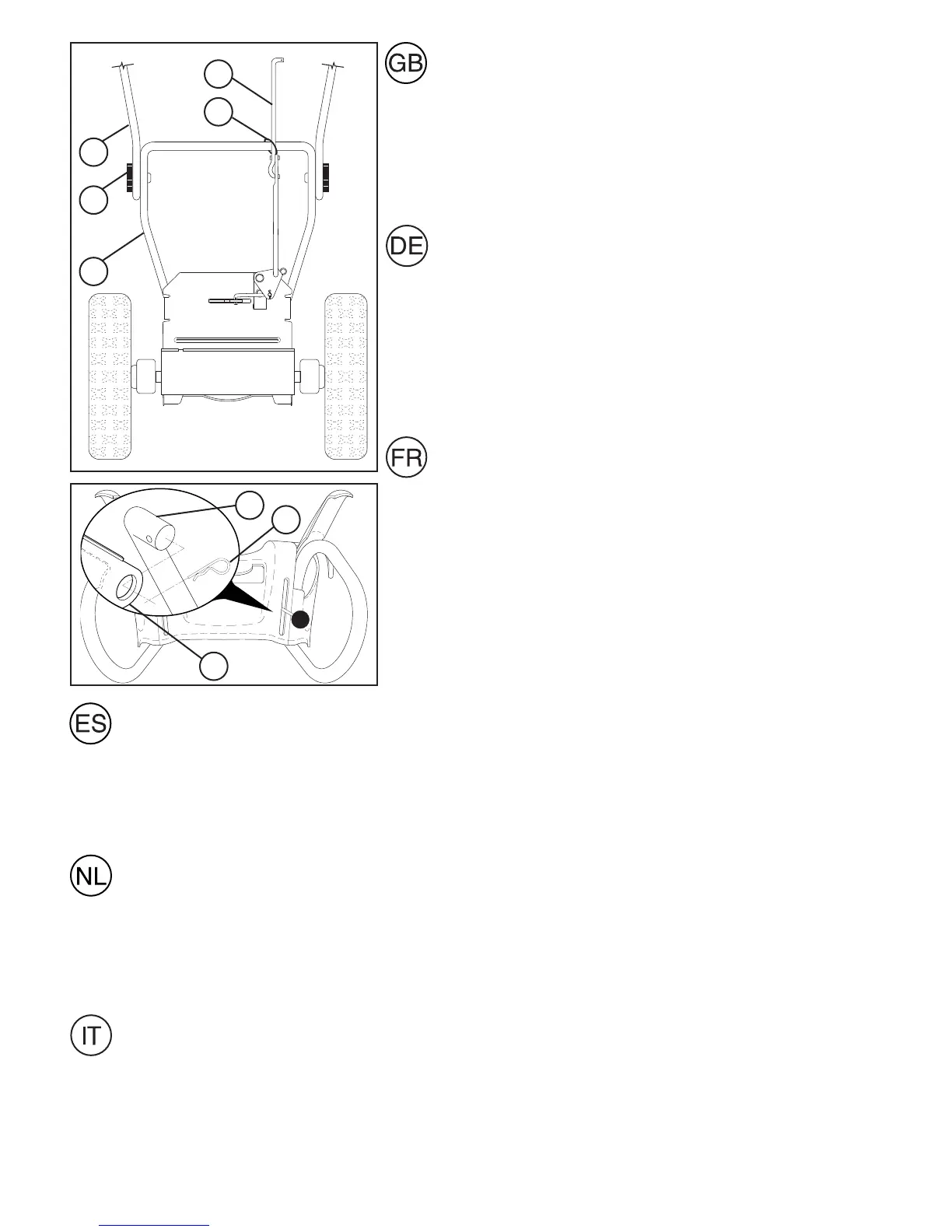 het onderste deel te bevestigen. Plaats de bouten in de onderste gaten van de hendels.