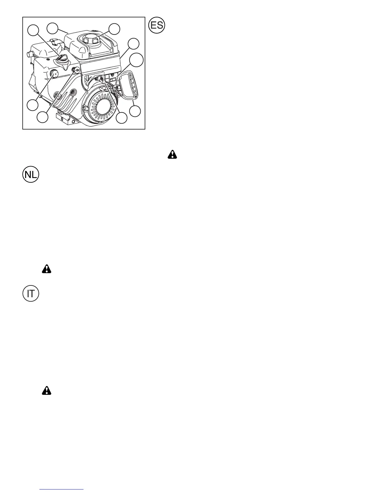 WAARSCHUWING: Veeg alle gemorste olie of brandstof af. benzine niet opslaan, morsen of gebruiken bij een