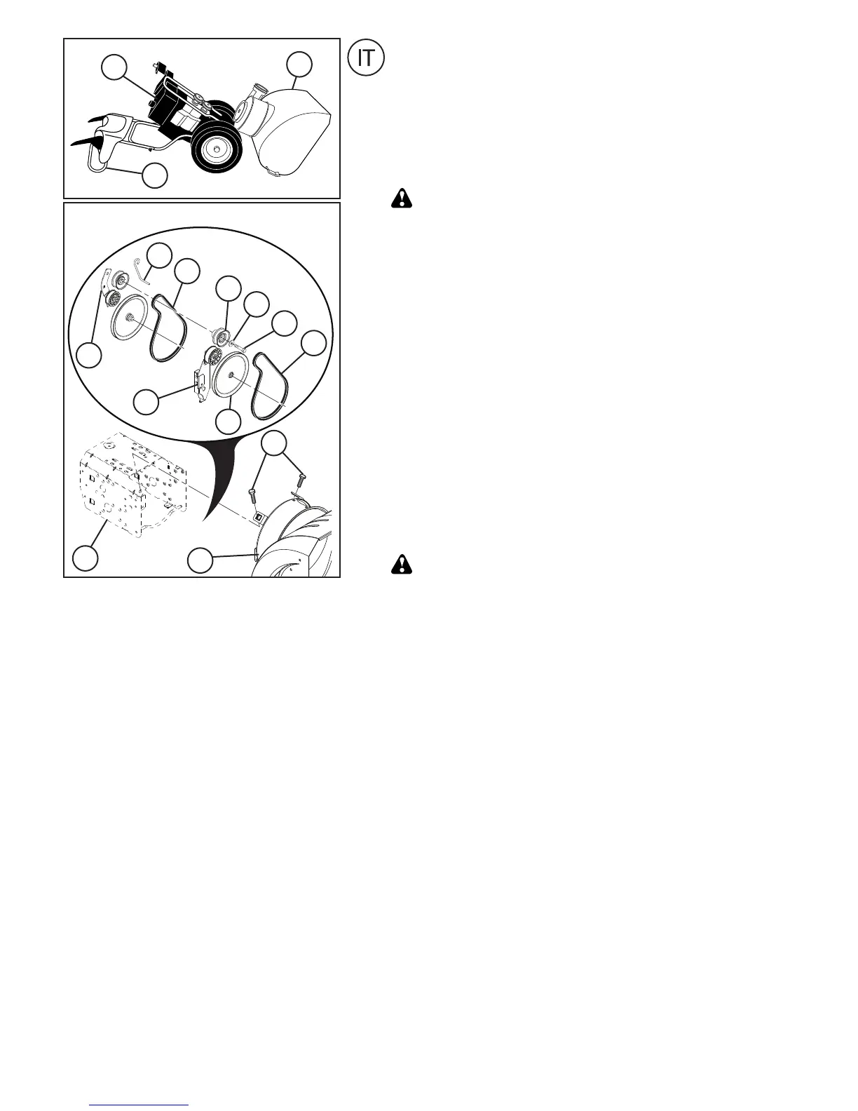 indicate al punto 12. Prima di rimontare lo spazzaneve, la cinghia dovrà trovarsi perfettamente alloggiata nell’apposita scanalatura.