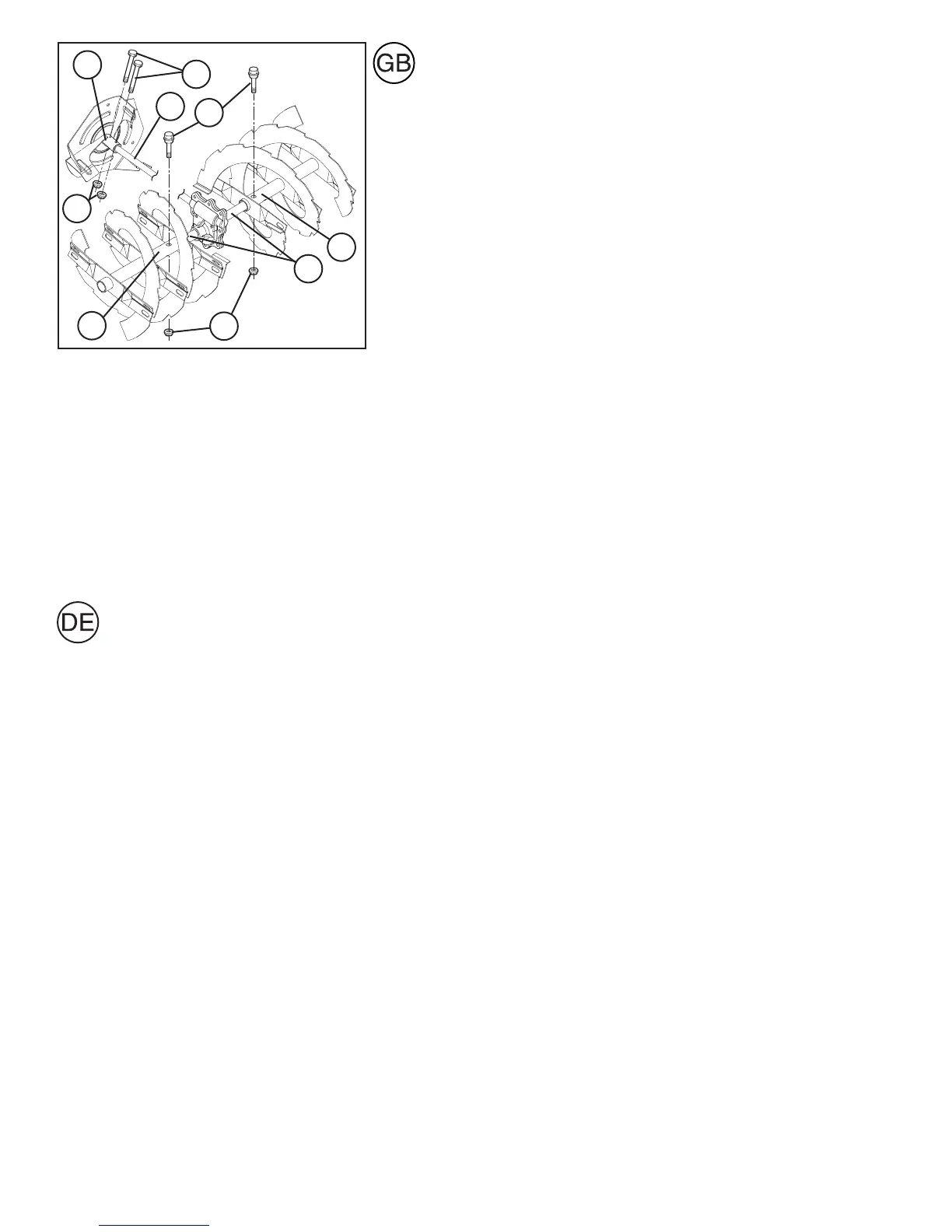 VORSICHT: Keine Fremdersatzteile verwenden. Verwenden Sie nur die Originalsechskantschrauben/-scherbolzen, die