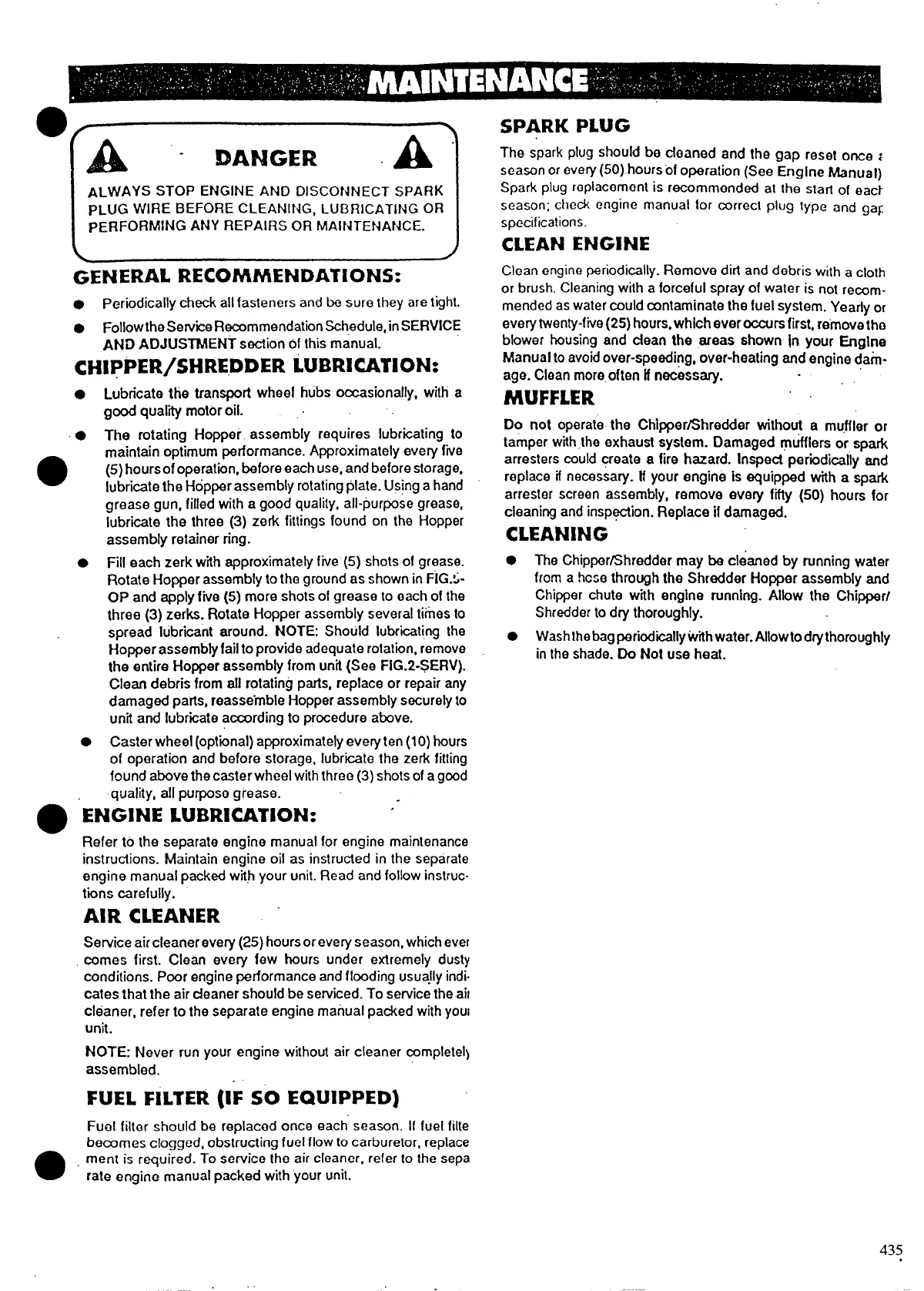 Do not operate the Chipper/Shredder Withoq a muffler or