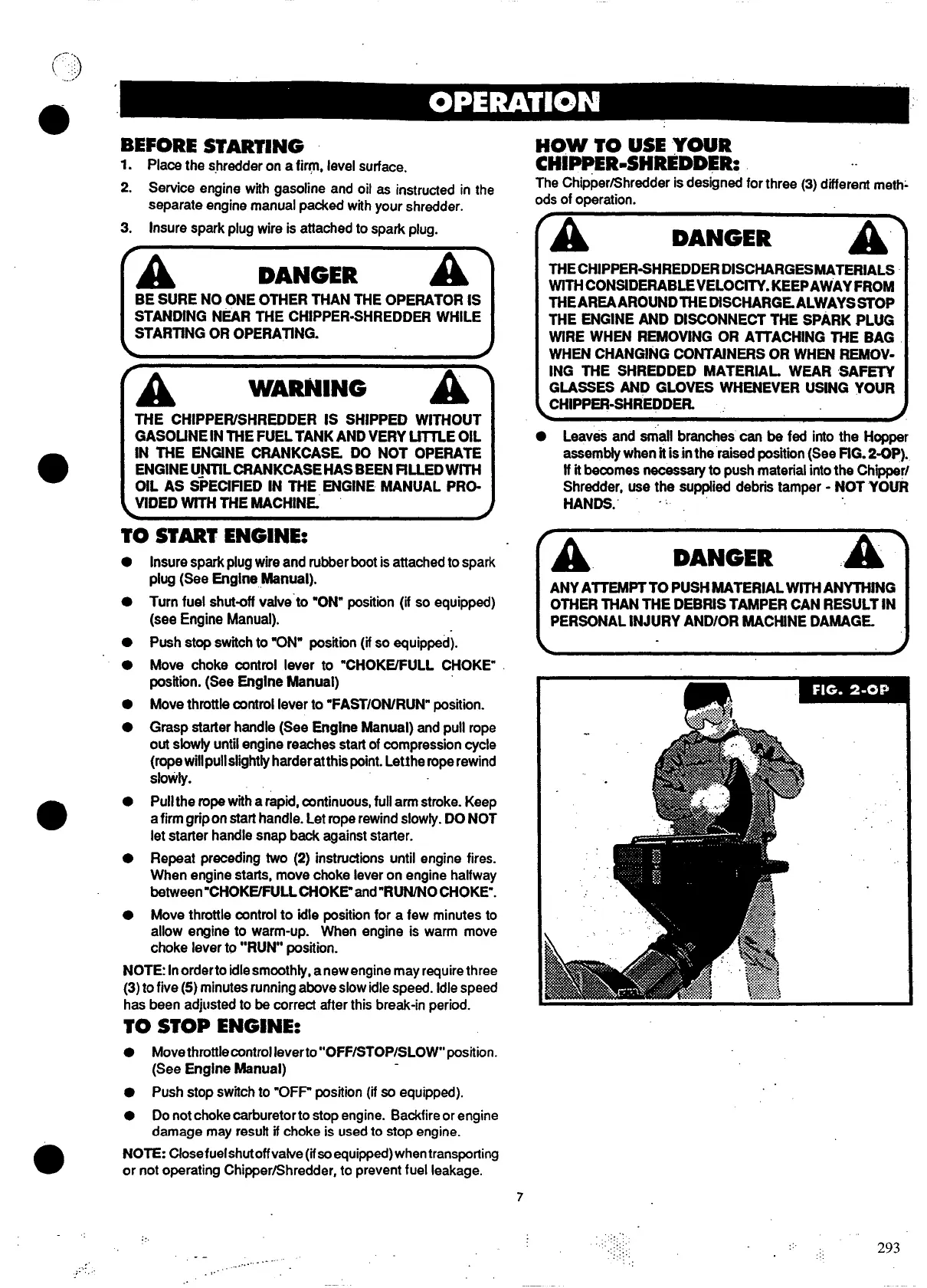 or not operating Chipper/Shredder, to prevent fuel leakage.