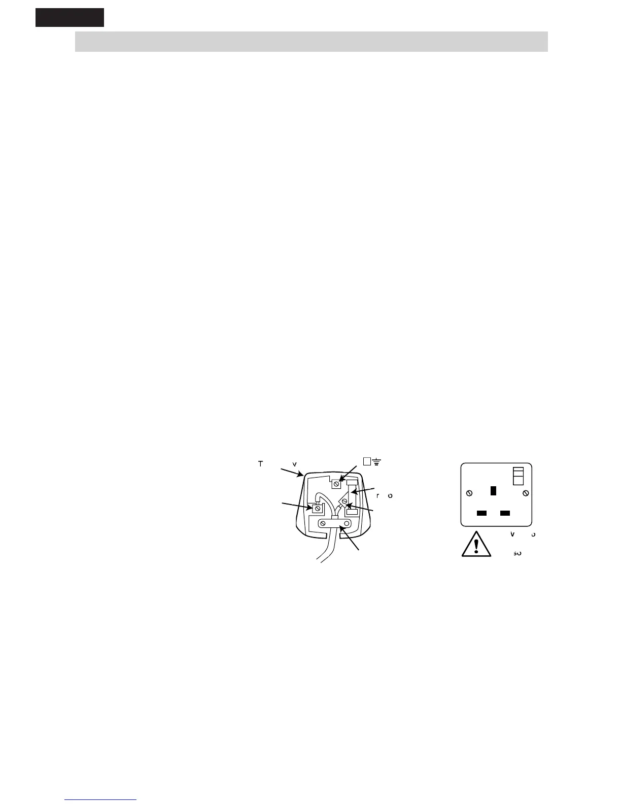 WARNING: Do not make any connection to the earth terminal of the plug marked ‘E’ or