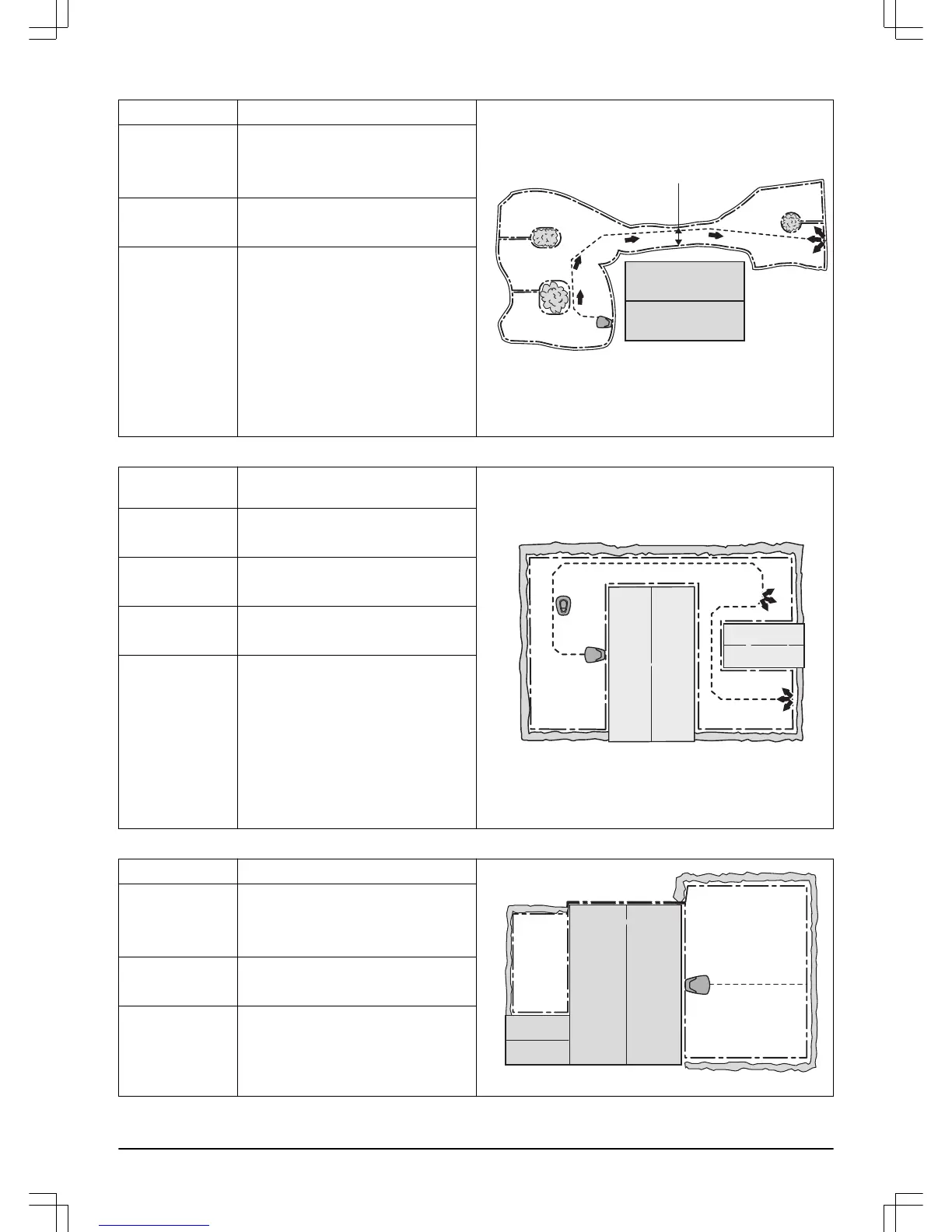 McCulloch ROB R800 - 3.19 Yard Layout Examples; 3.19.6 Unsymmetrical Area with Passage and Islands; 3.19.7 Three Areas Linked by Narrow Passages