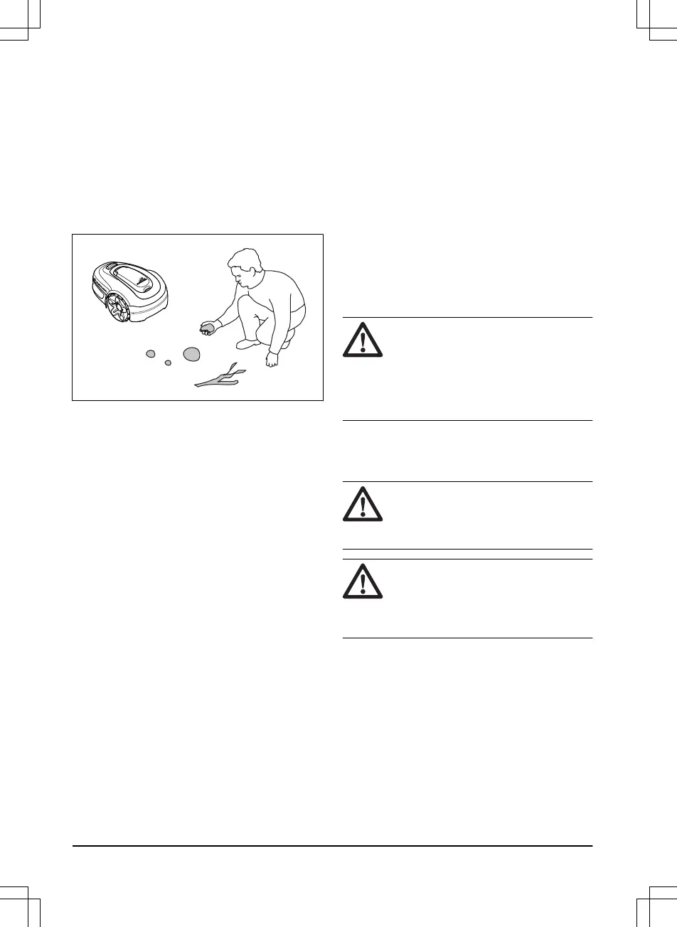 stones, branches, tools or toys on the lawn. If the