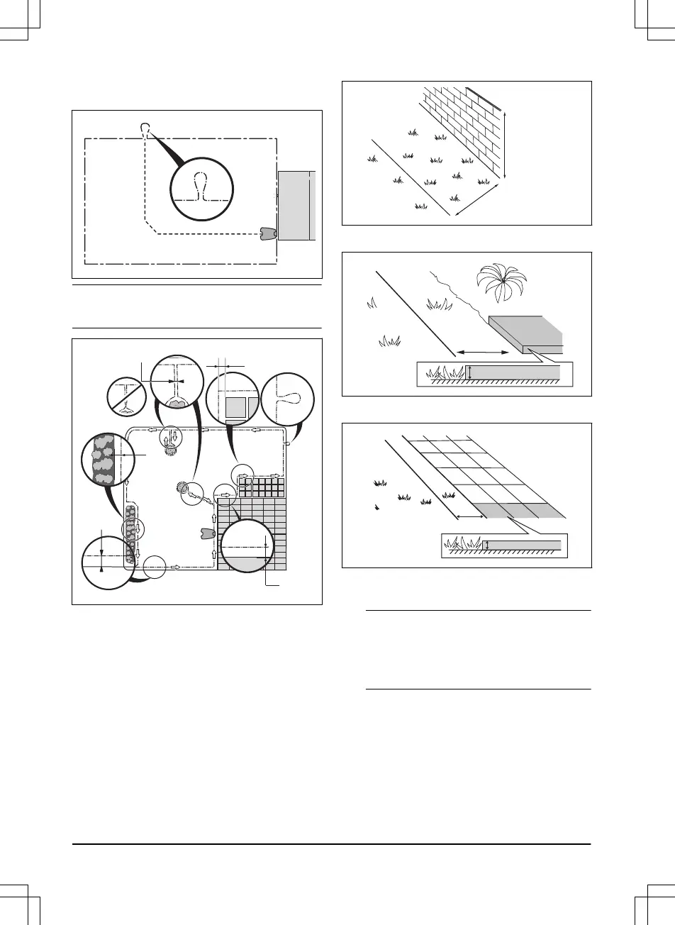 • Put the boundary wire 35 cm / 14 in. (B) from an