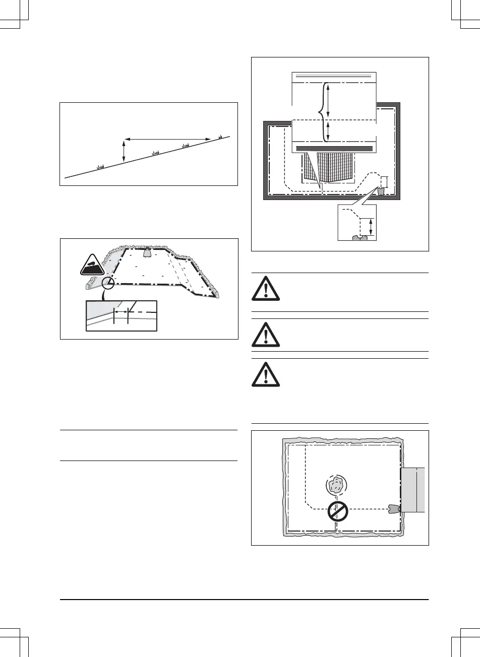 of the lawn, put the boundary wire 20 cm / 8 in. (A)