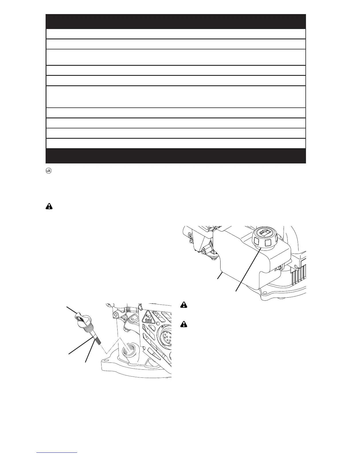 • Заповніть паливний бак до кромки заливного