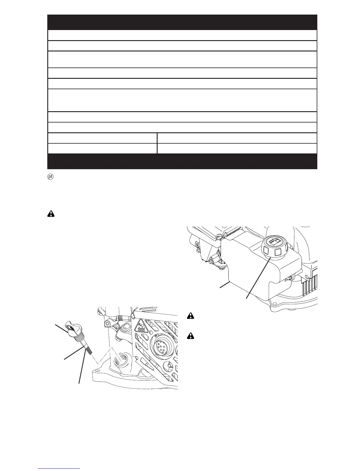 CUIDADO: Encha o motor com óleo antes de o ligar.