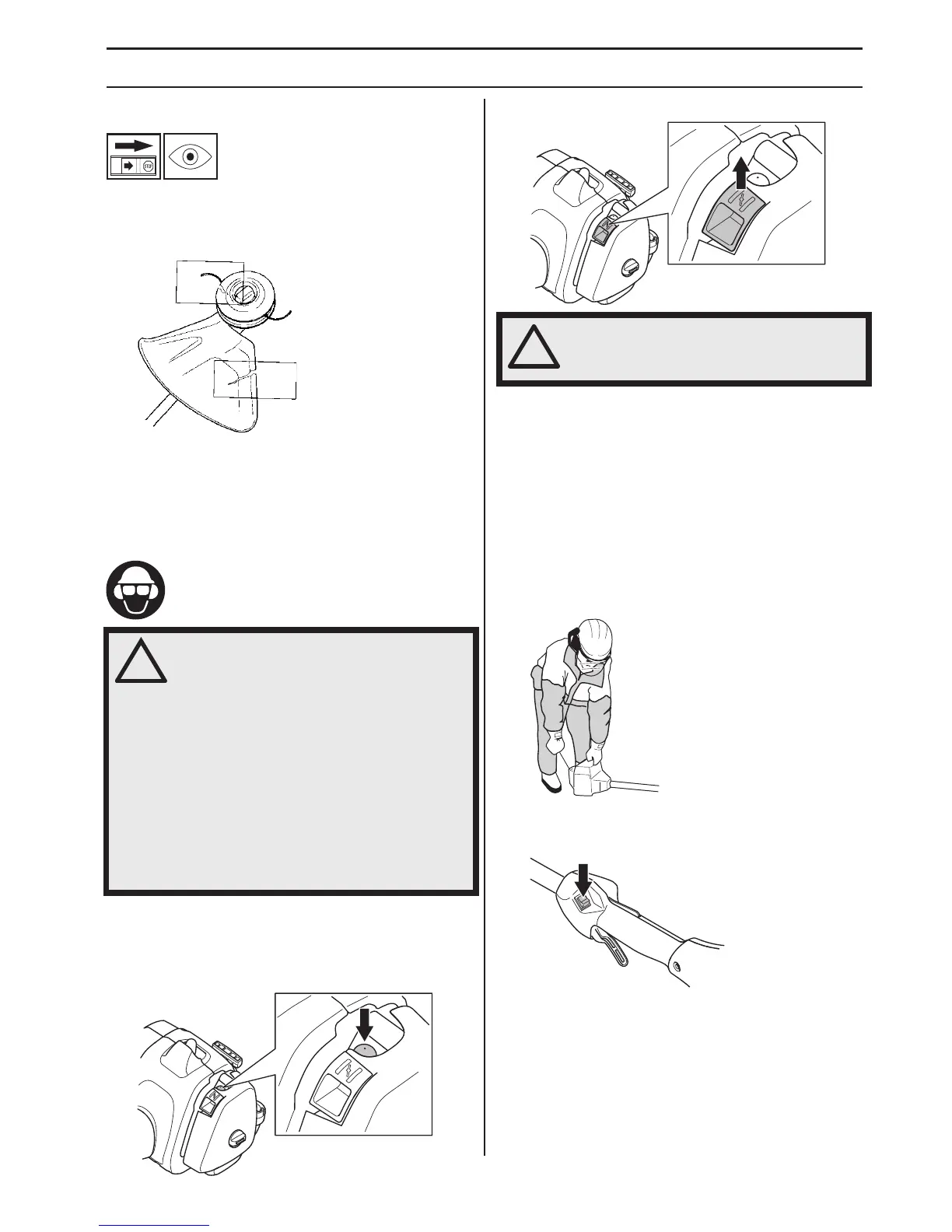 (OBS! Ej med foten!). Grip starthandtaget, drag med