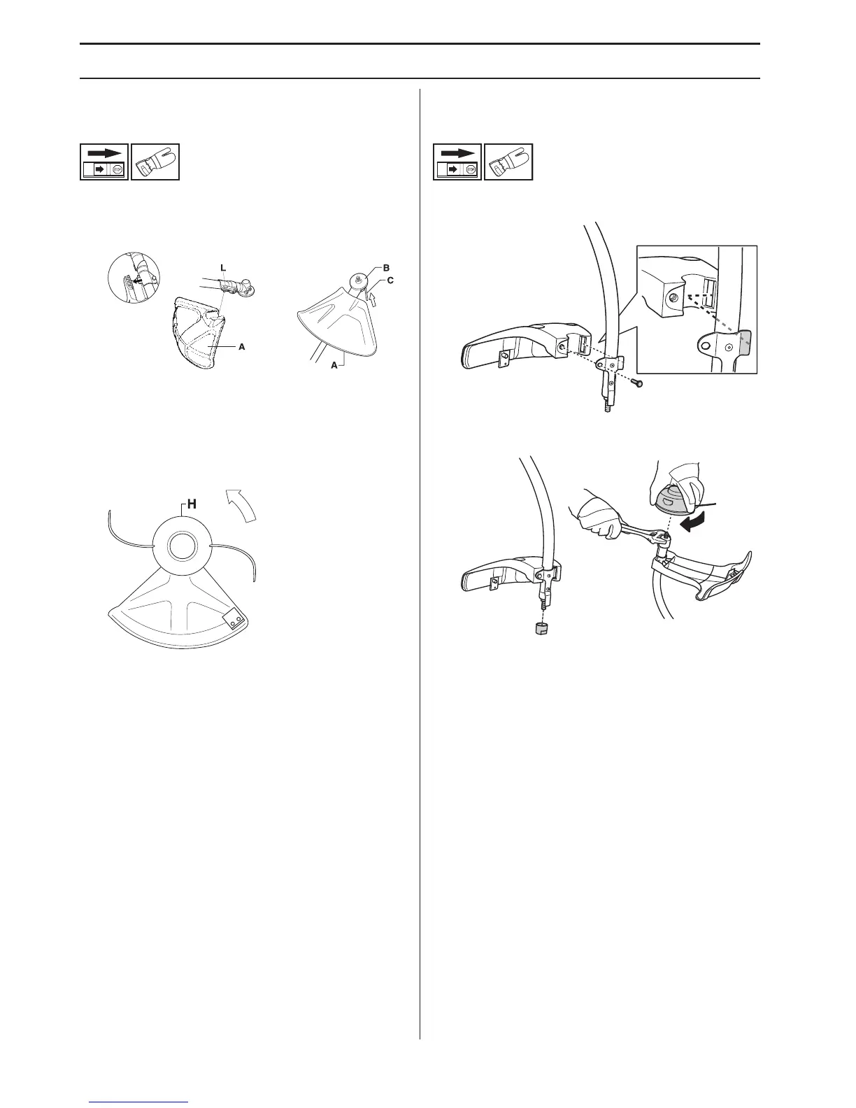 • Kierrä trimmipää/muoviveitset (H) kiinni