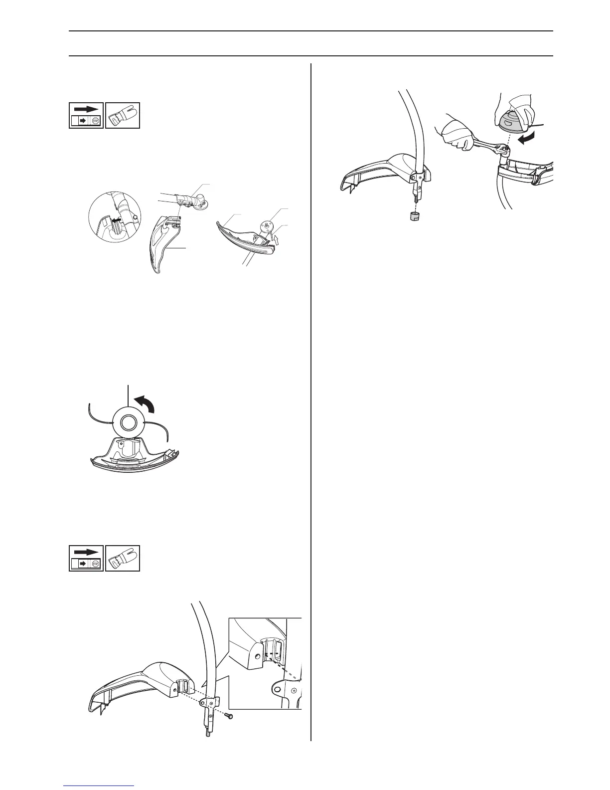• Screw the trimmer head onto the shaft.