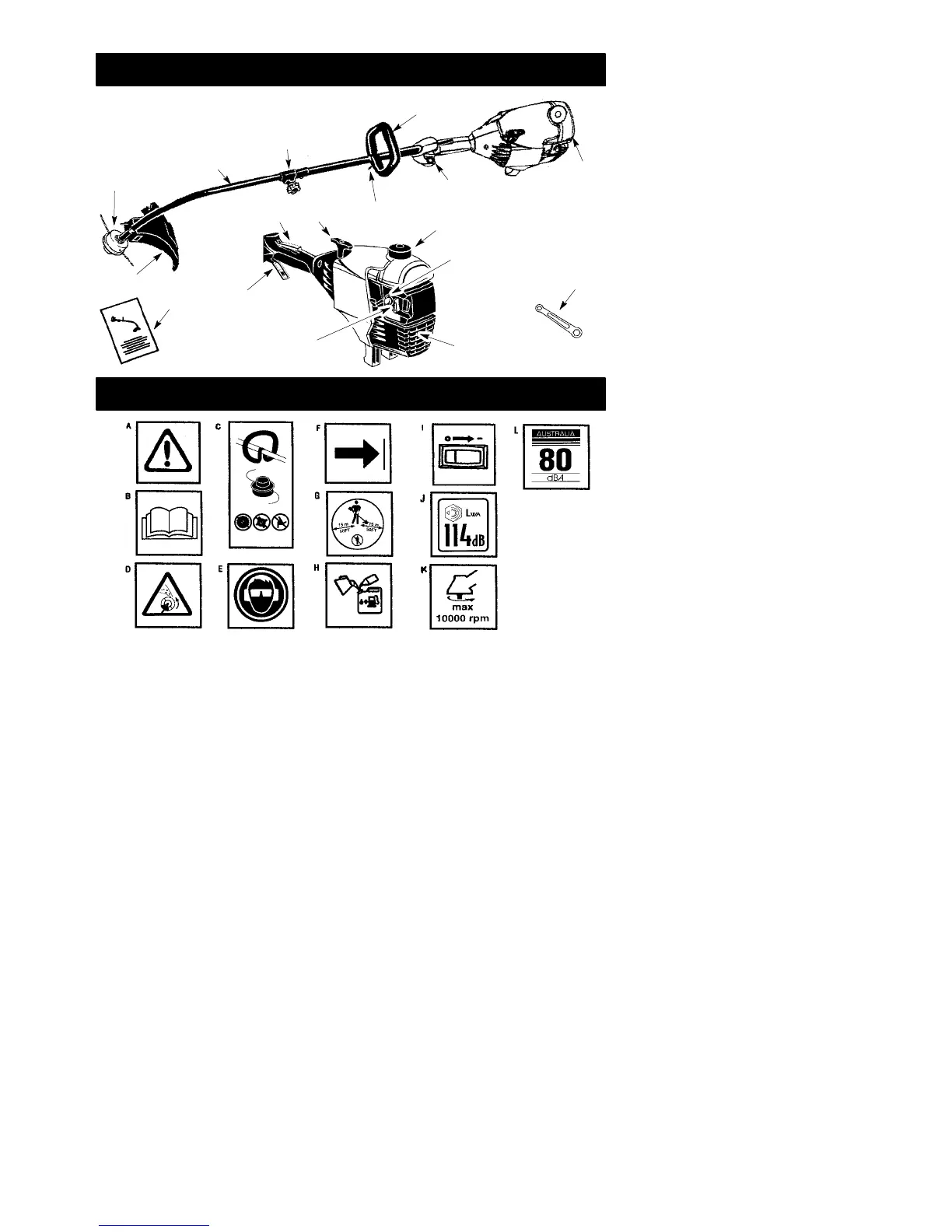 WARNING! The trimmer line can throw objects violently. You can be blinded or