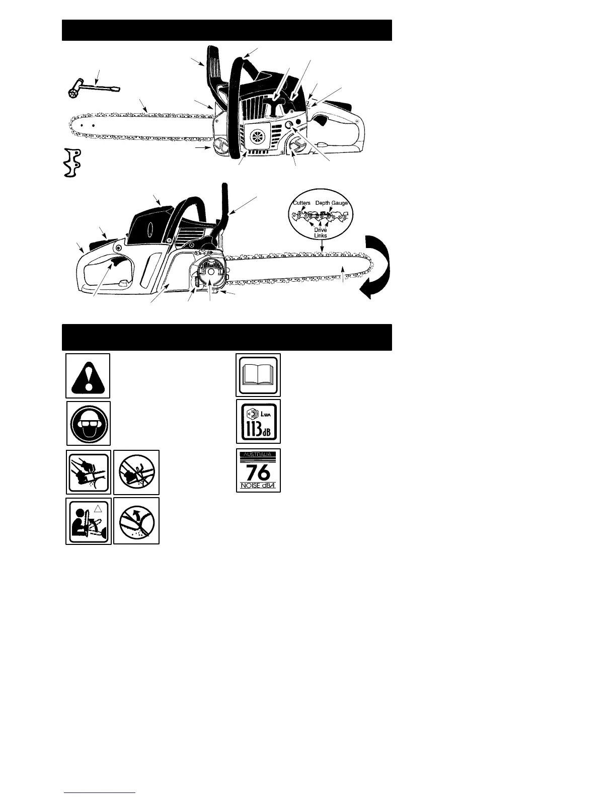 should be avoided; tip contact may cause the guide bar to