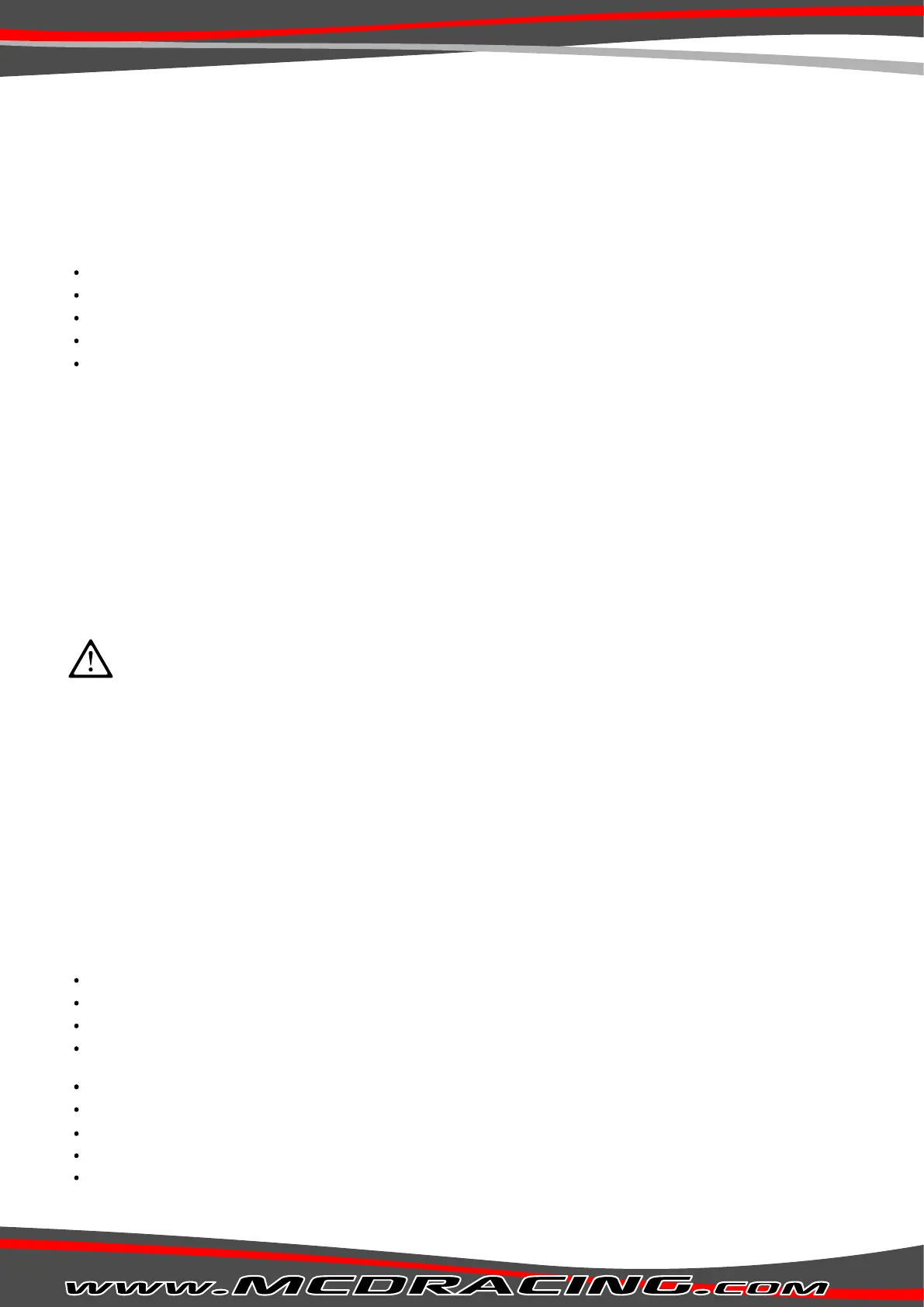 back. Repairs that are not covered by warranty have to be paid for in advance. MCD Racing cannot be held