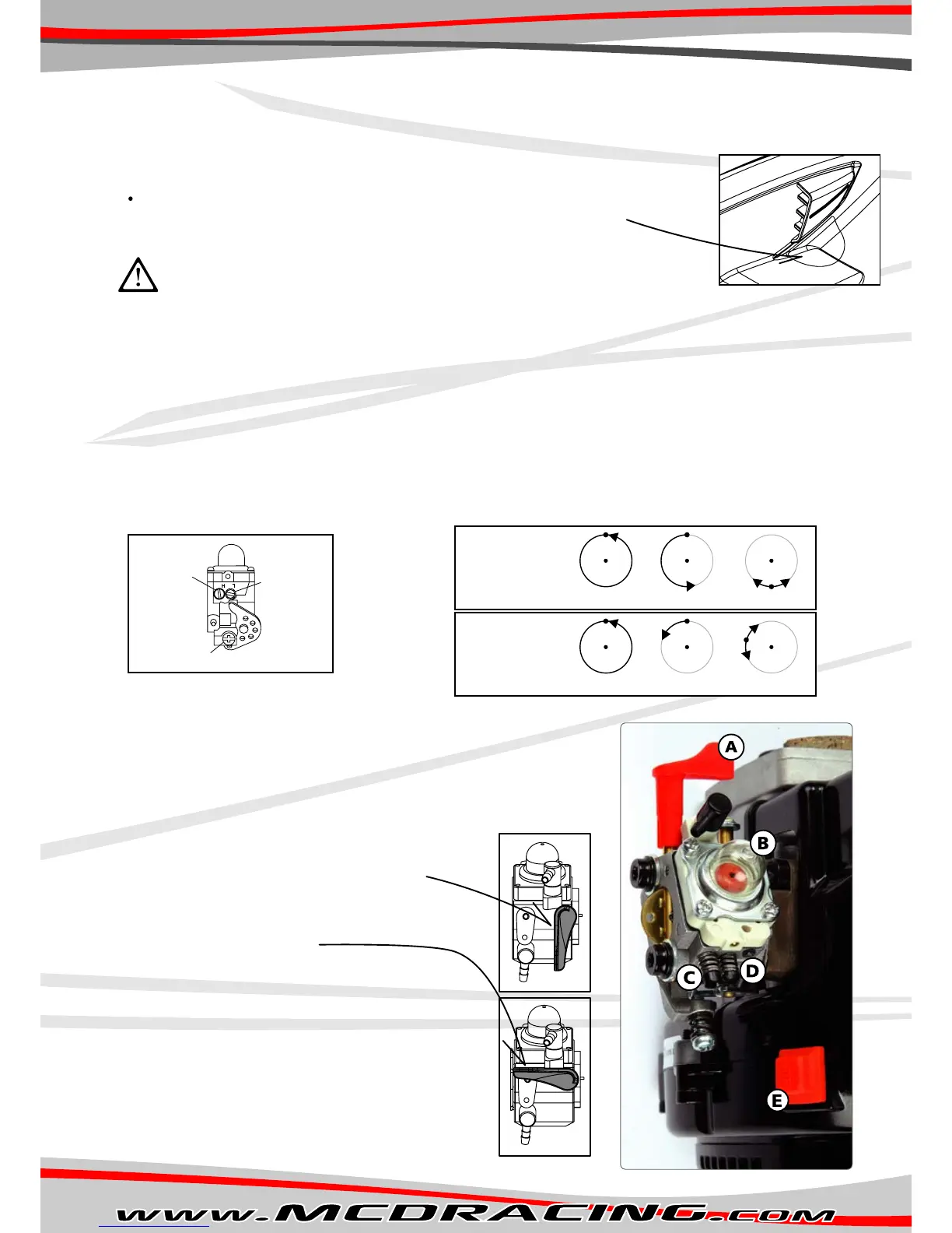 carburetor. The carburetor features a manual pump (B) wth a transparent