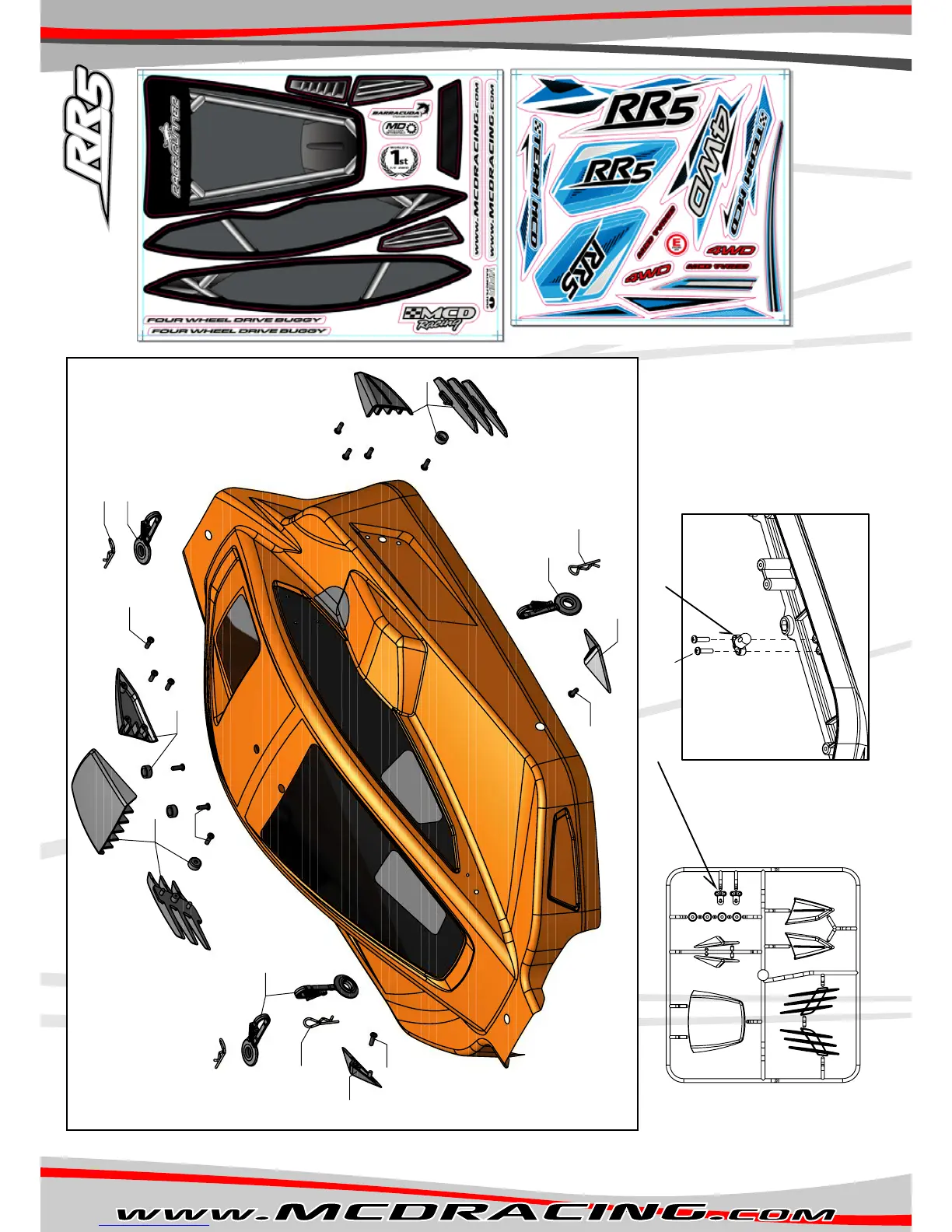 5002 RR5 Body Shell Composte Accessores