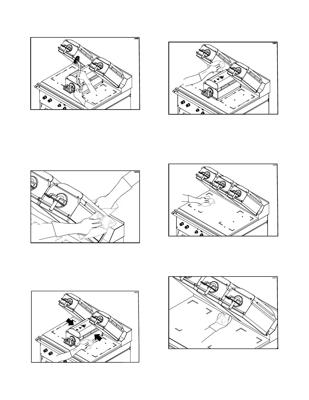 37. Rinse the lower grill surface with a clean,
