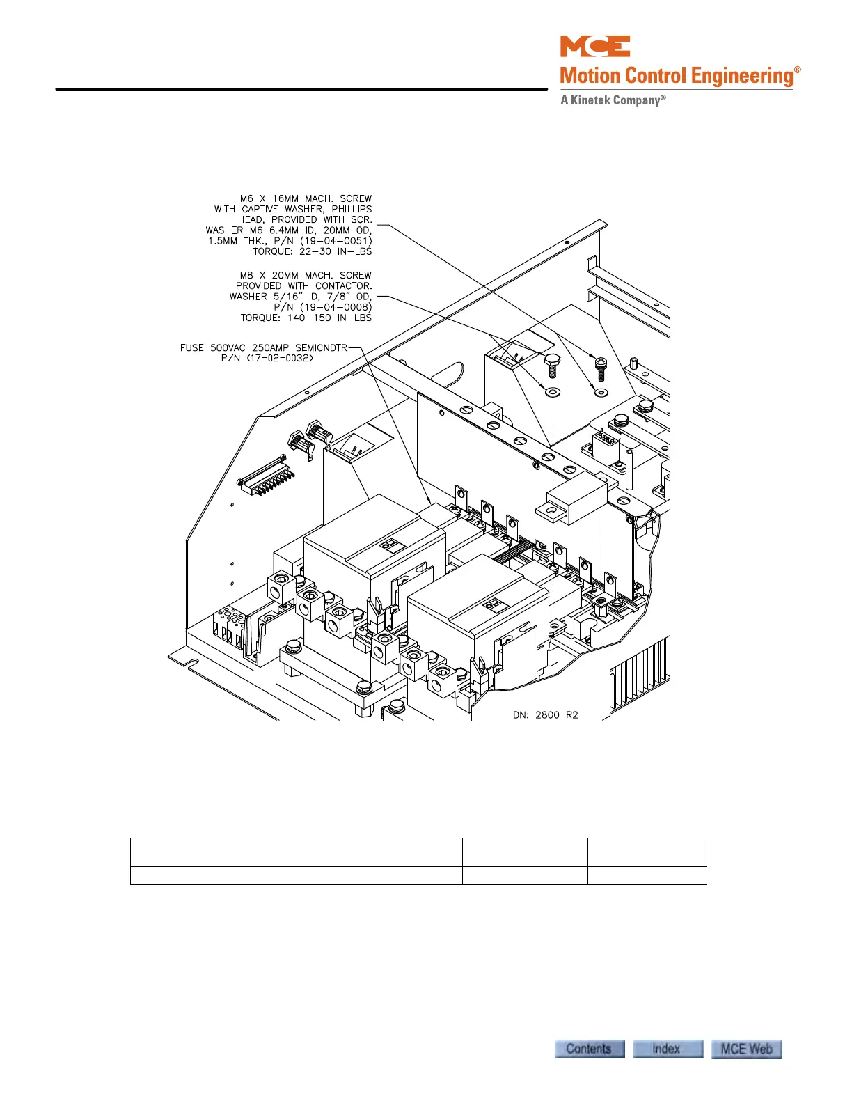 3. On the SCR side of the fuse, torque the screw to 22-30 inch pounds. On the Contactor