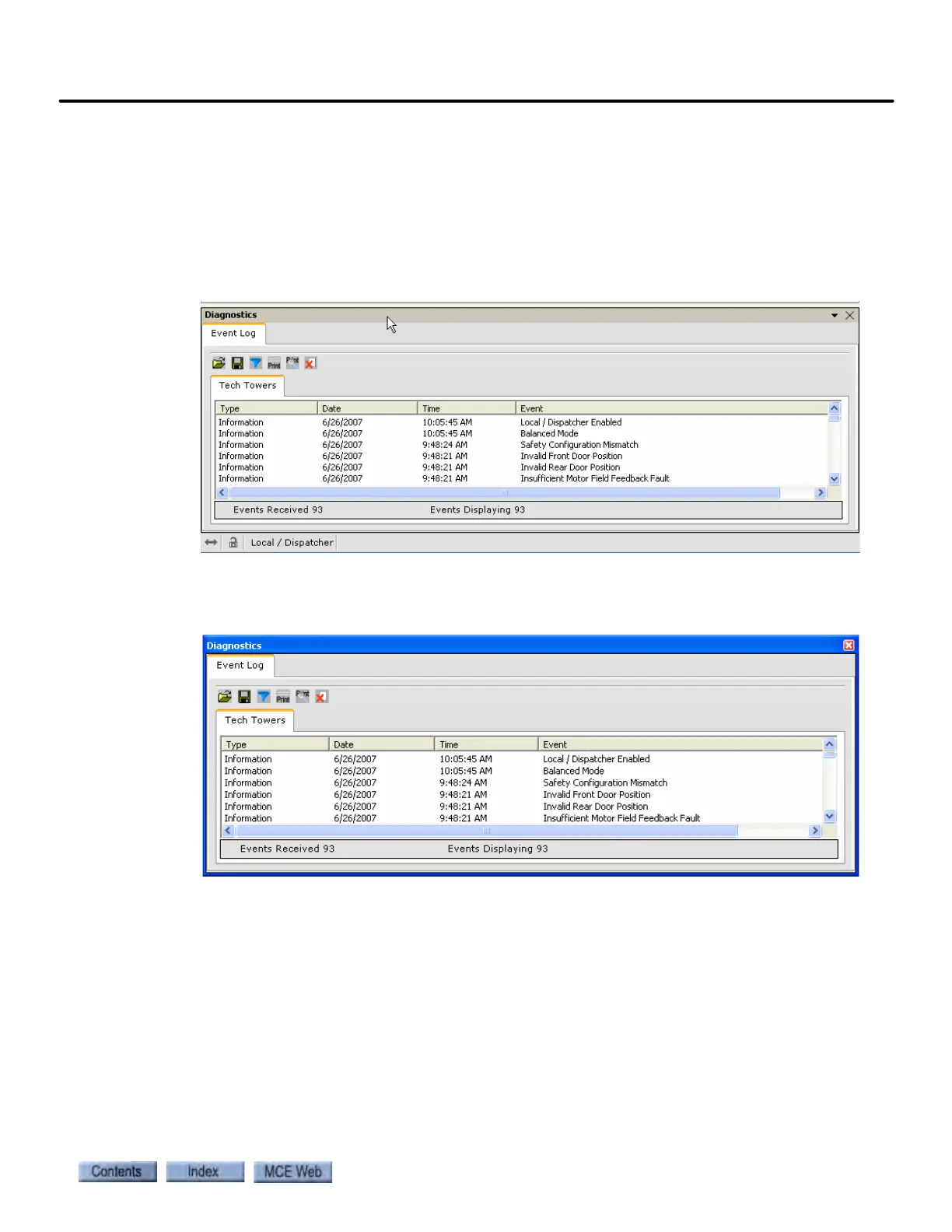 1. Notice that the Diagnostics window is positioned at the bottom of the screen (connec-