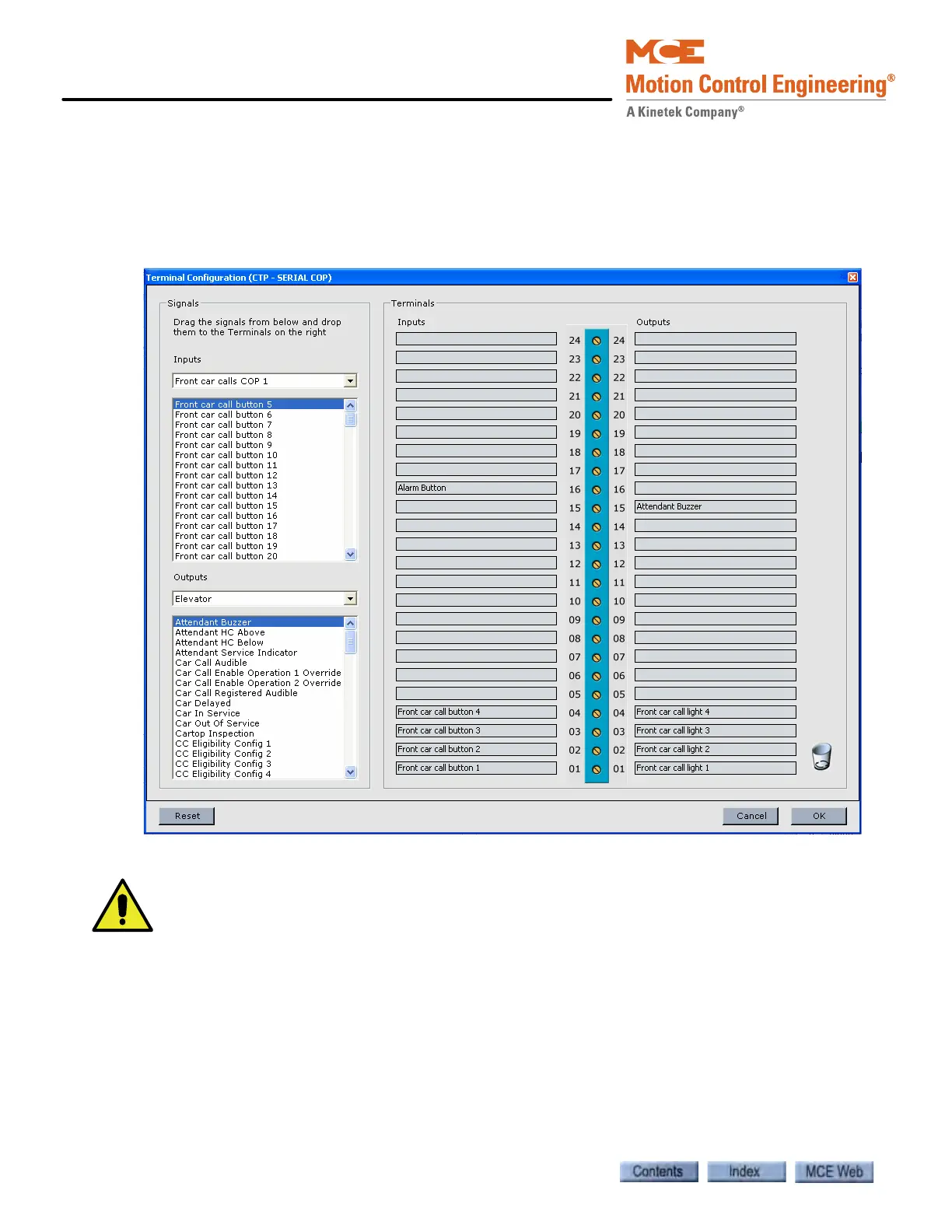nal from the column and drag it to the desired connector pin box. Except for car call button