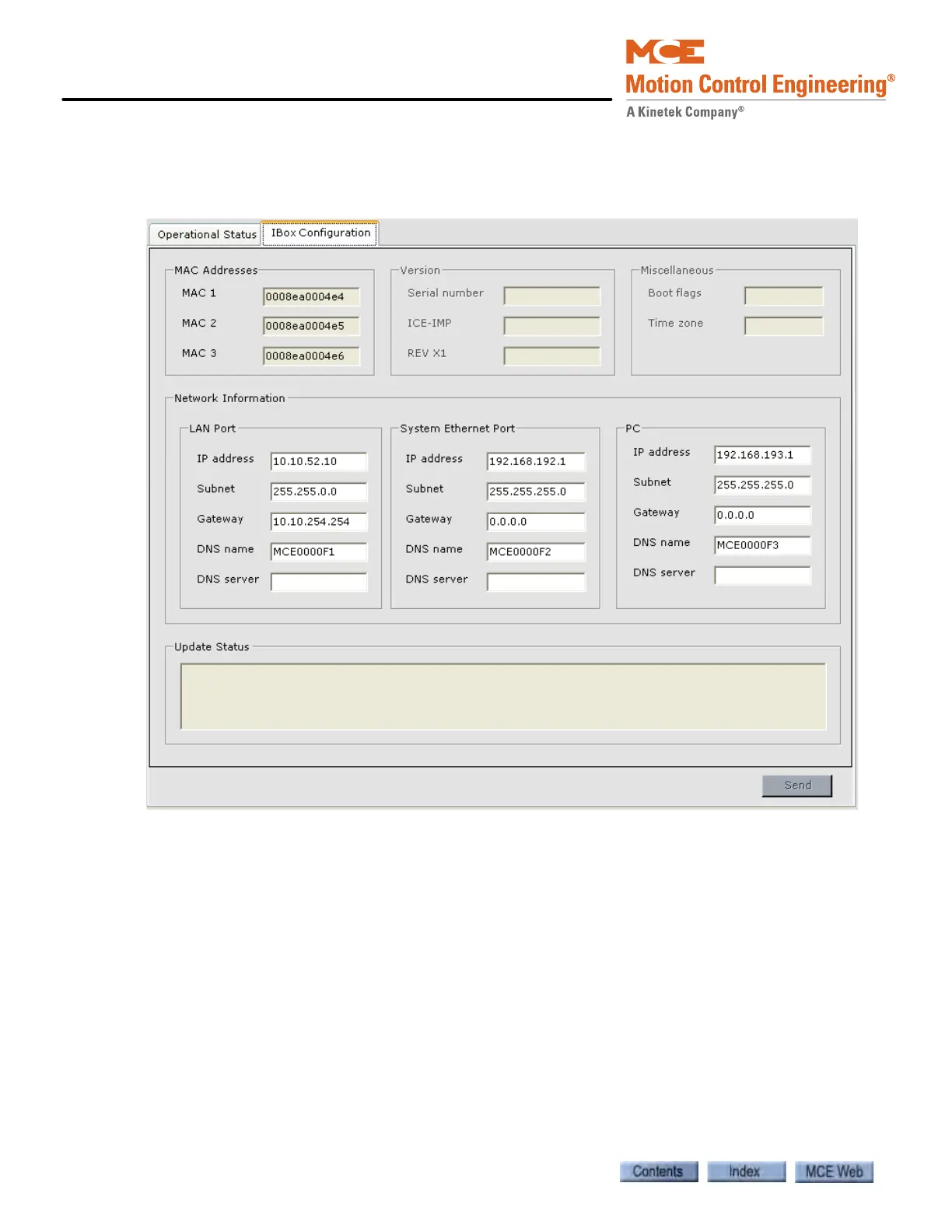 • Network Information: Ethernet information for each of the iBox ports.