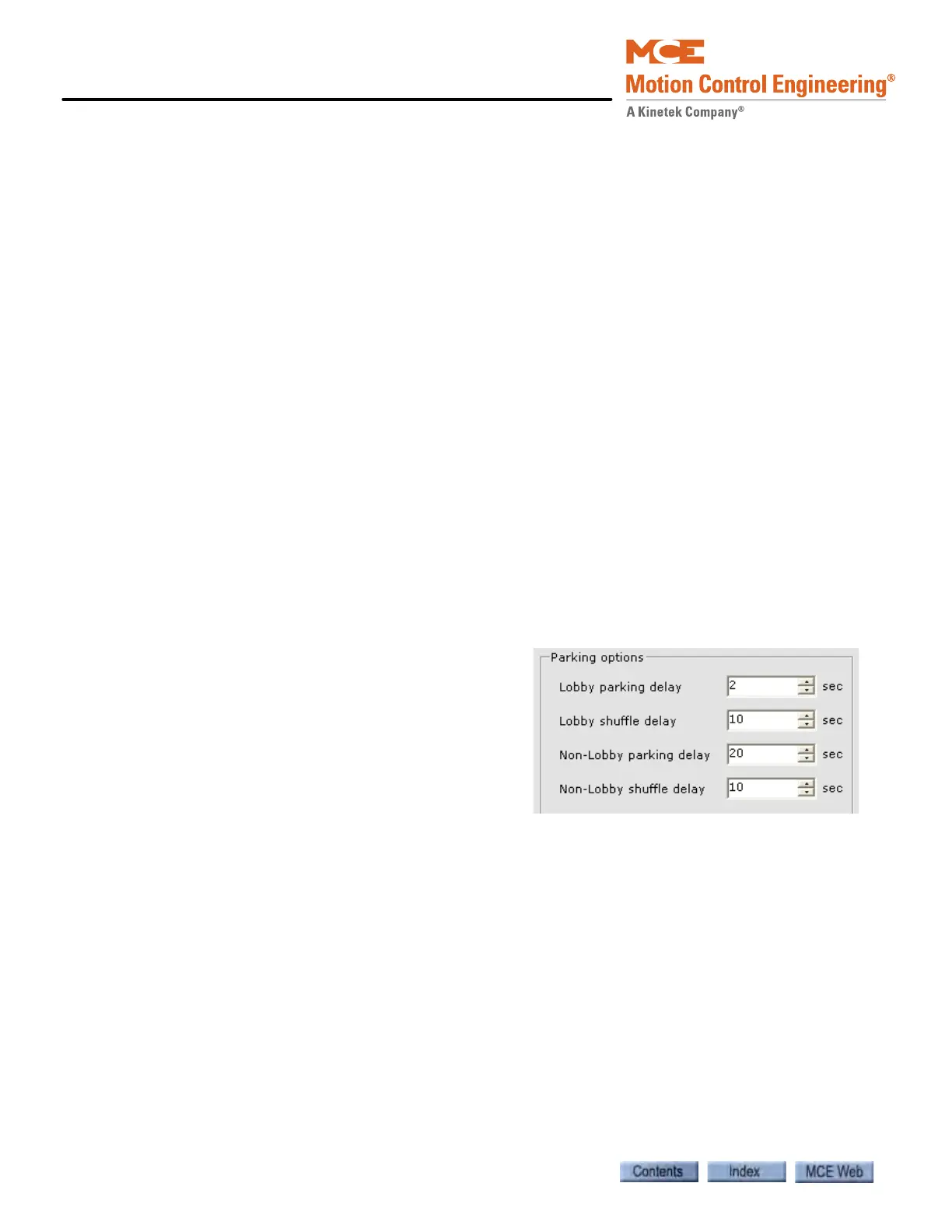 • Non-lobby shuffle delay: When a car is parked at a non-lobby parking floor, this parameter