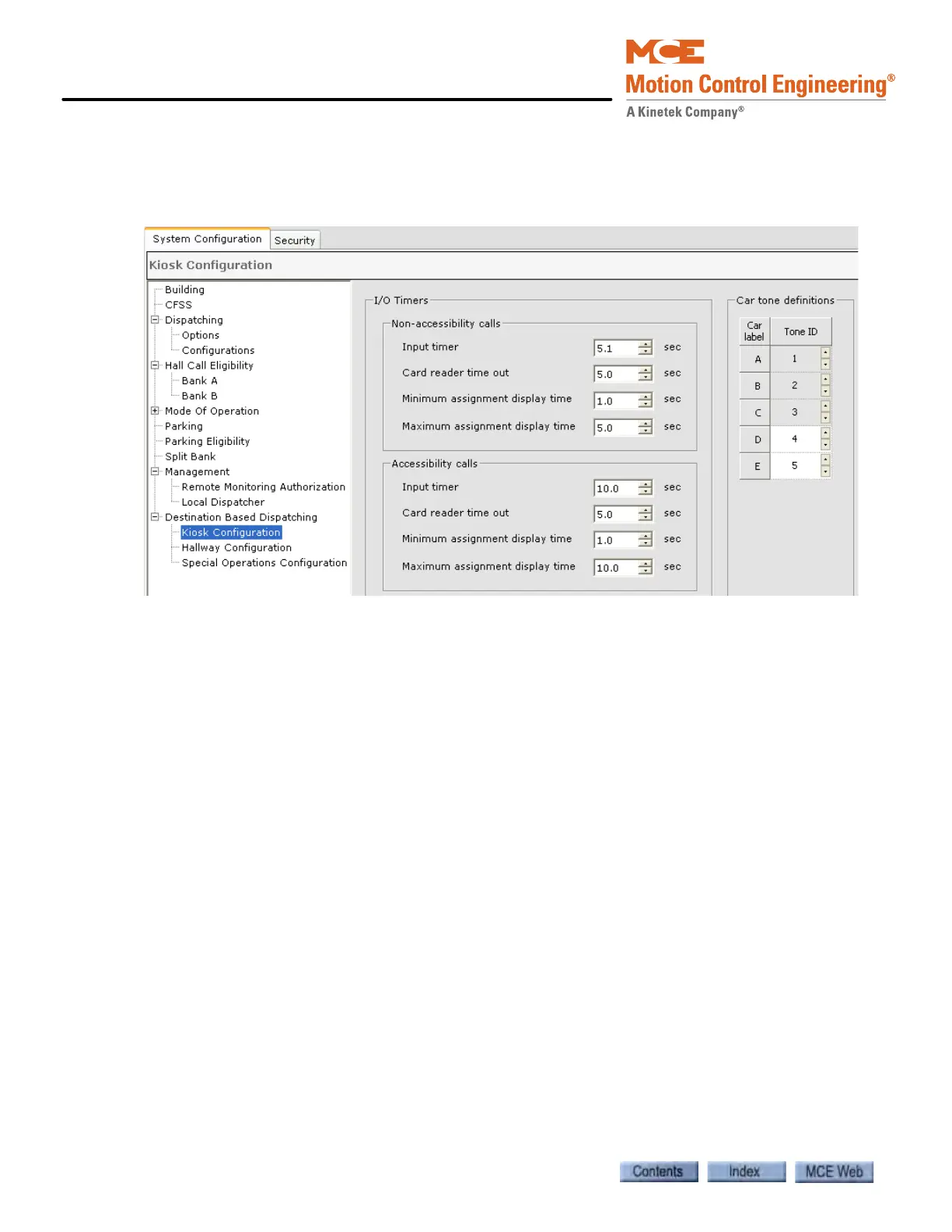 The Kiosk parameters are found on the System Configuration > Destination Based Dispatching