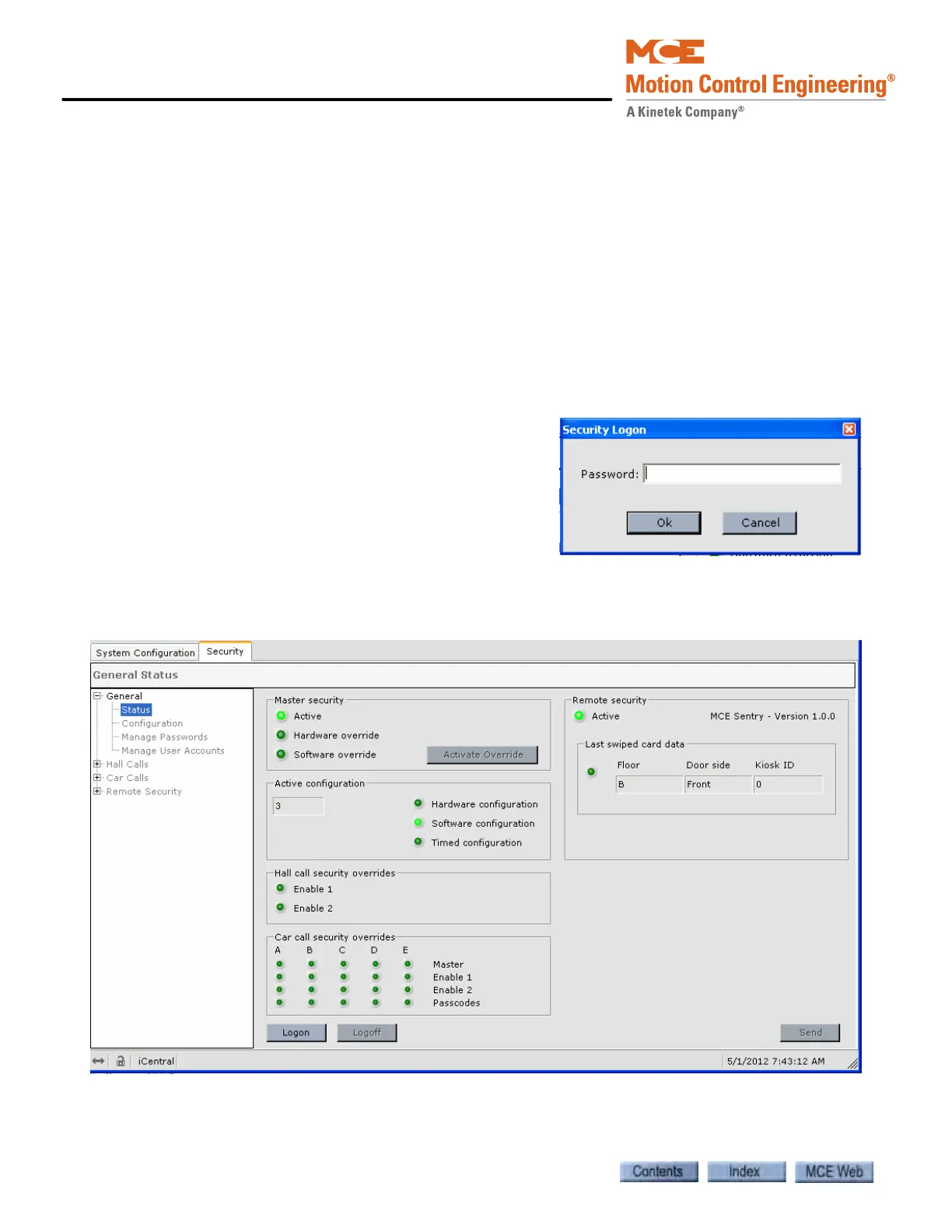 vator security is controlled by settings made while iView is connected to iCentral or the Local/