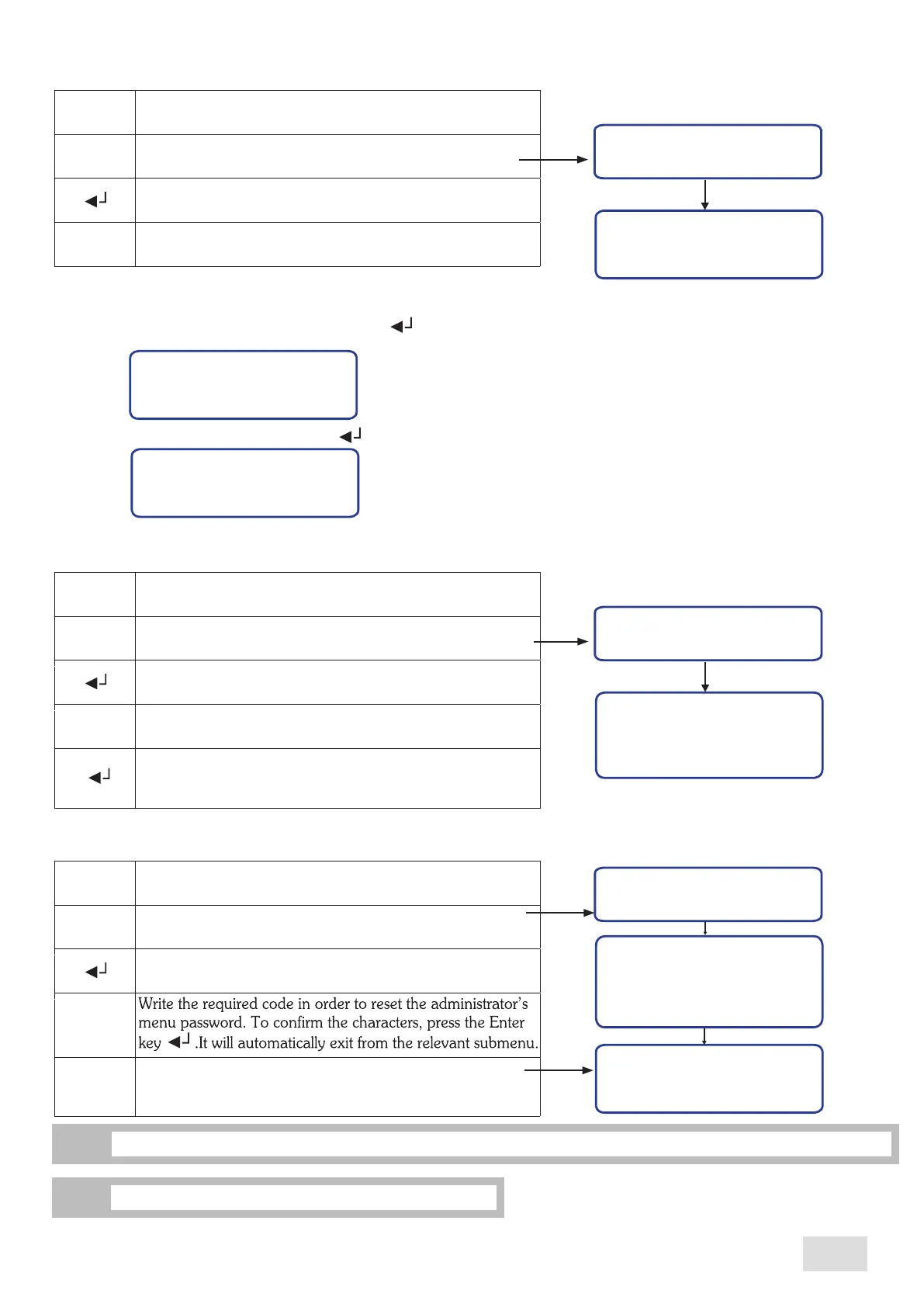 This submenu allows the reset of administrator’s menu password to the initial one, “ABCD”. Proceed as follows: