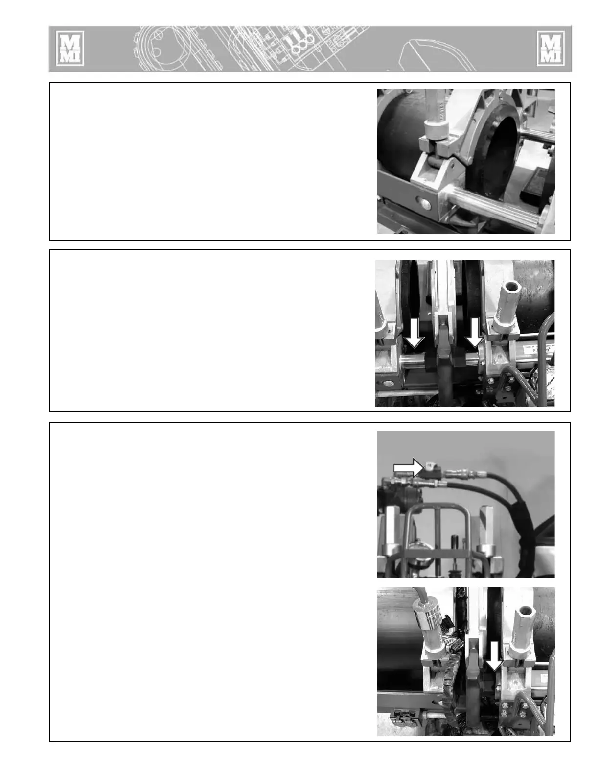 Open the upper jaws and insert pipe in each pair of jaws with