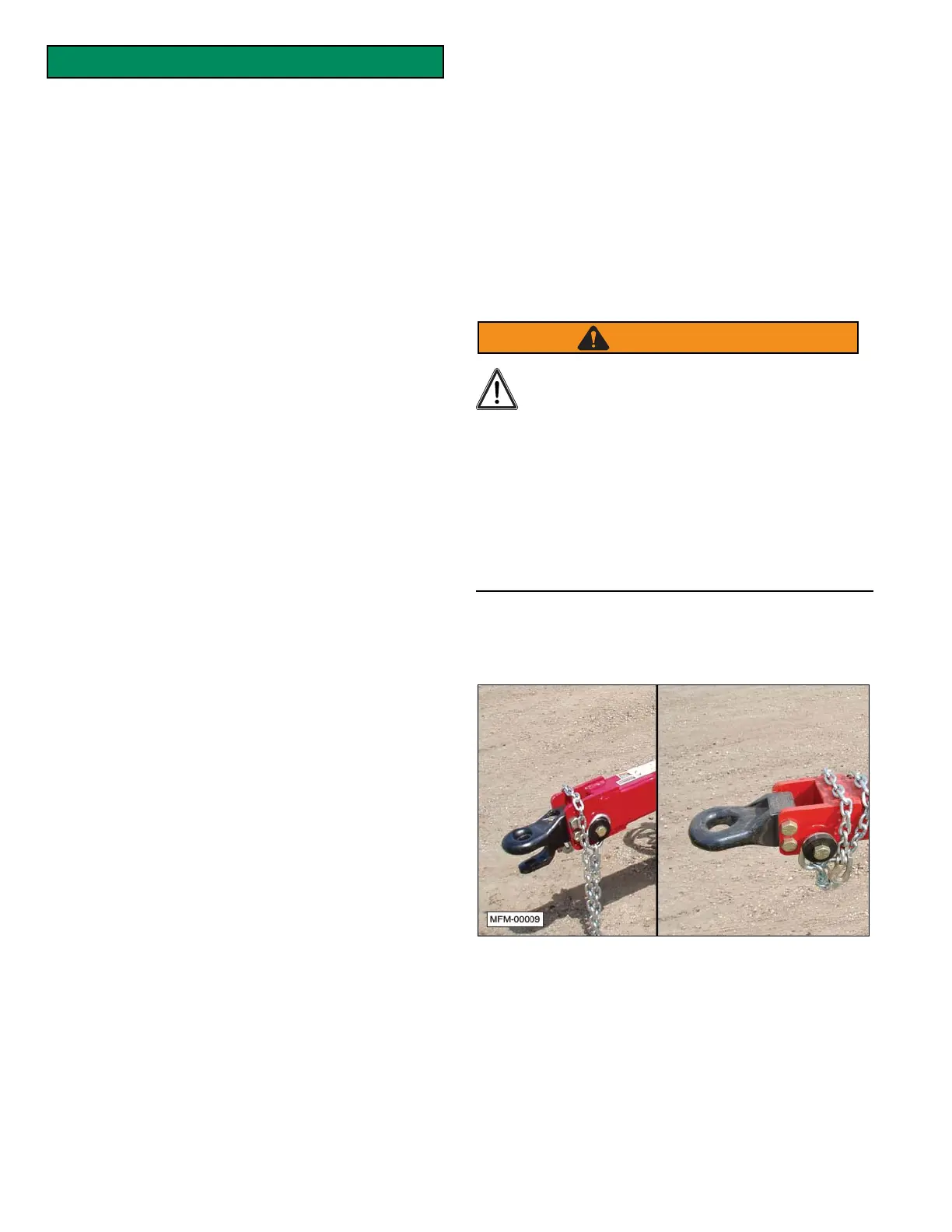If towing the unit with a draw bar, use only an