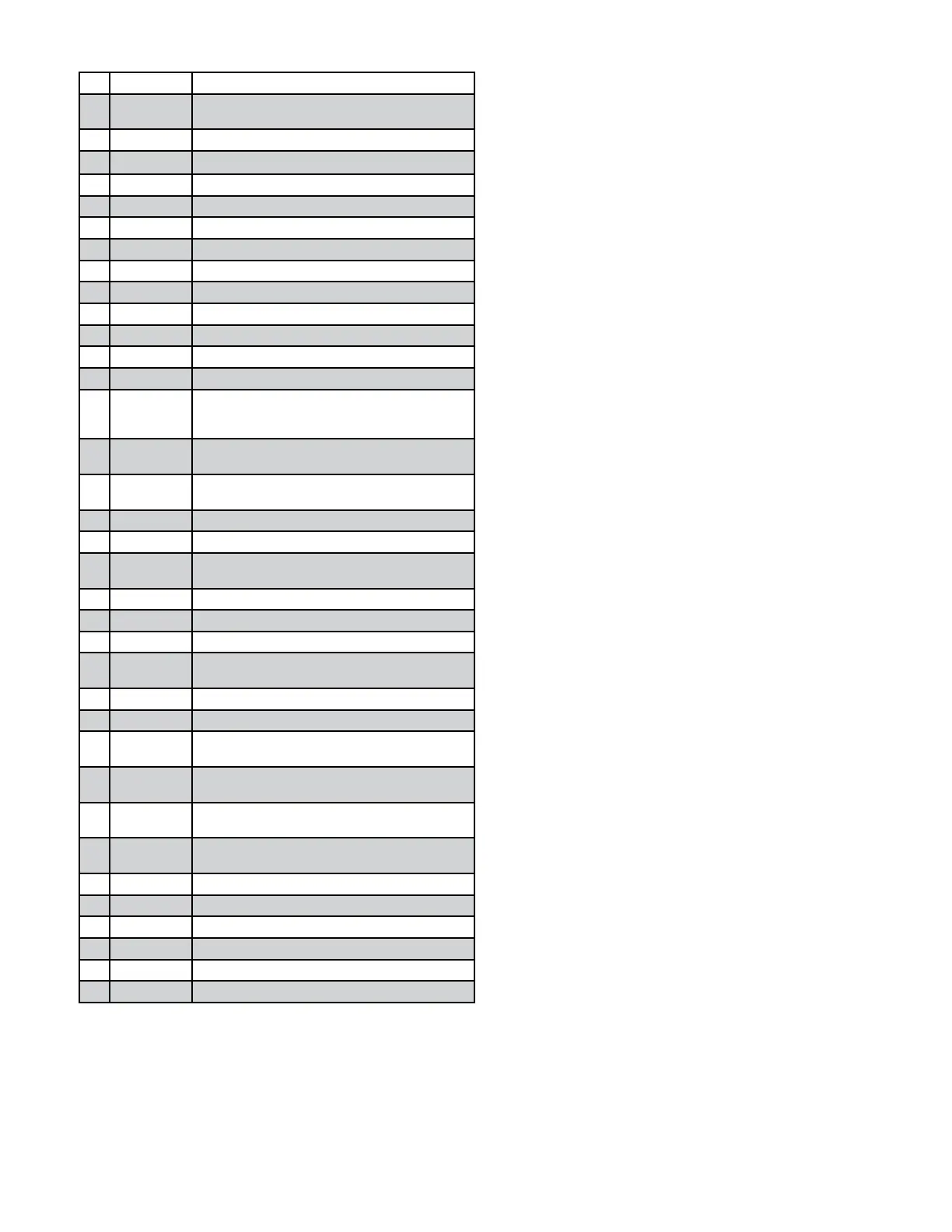 Item Part Number Description
