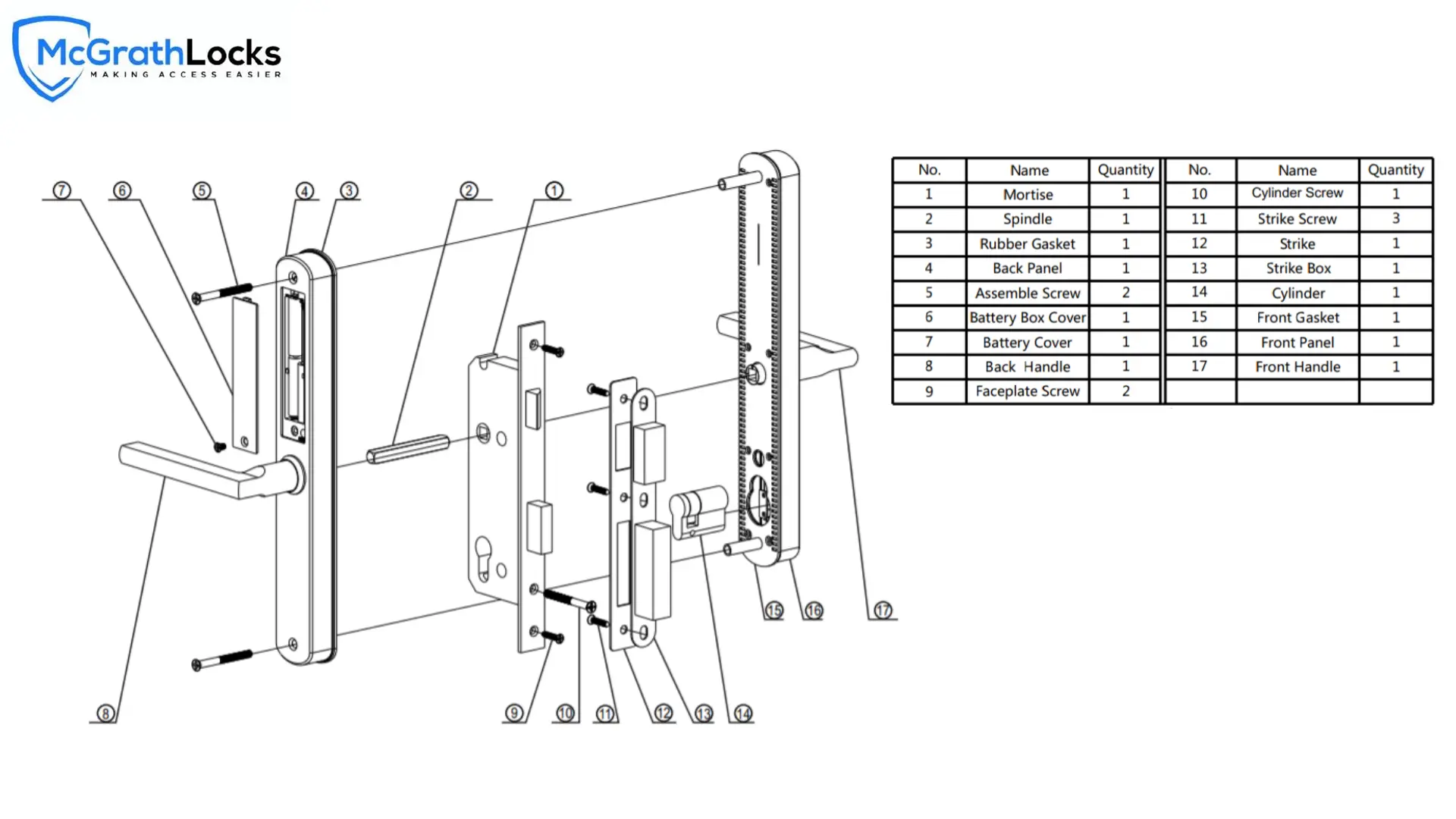 McGrath Locks MLA210 - Exploded View