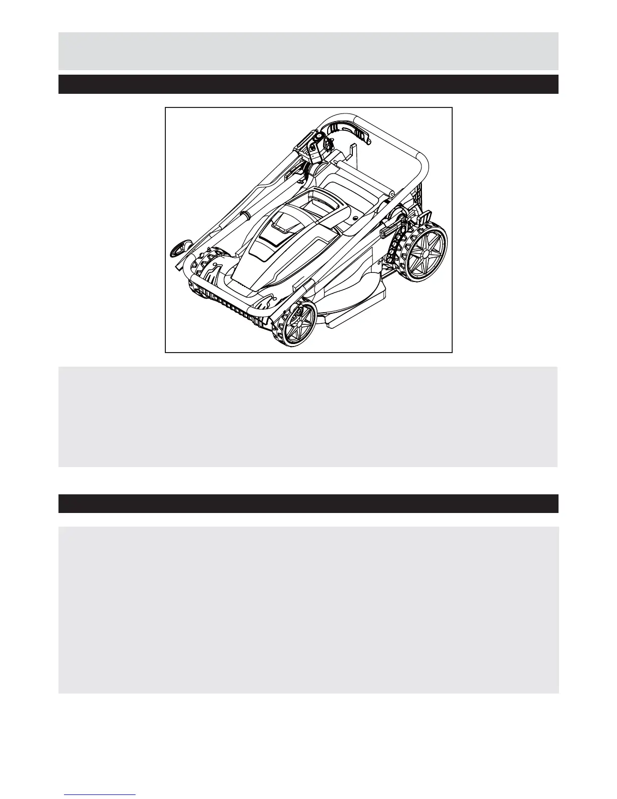 • Clean the mower regularly with a soft brush. Do not use cleaning agents or solvents; these may
