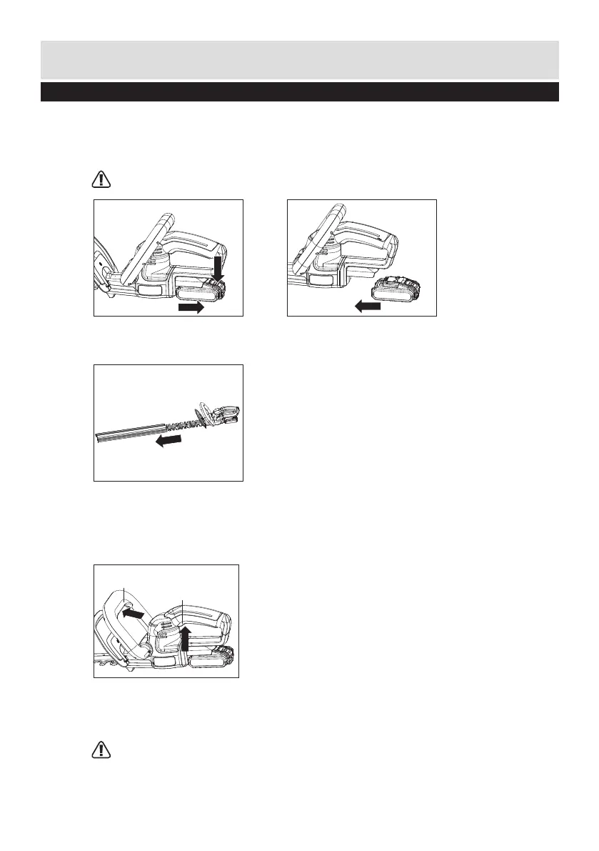 Depress the Battery pack release button to release battery pack from your hedge trimmer. After