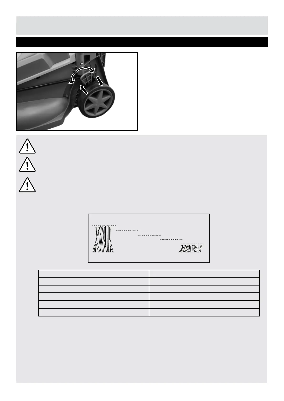 IMPORTANT! Set the cutting height only when the motor is switched off and the isolator key