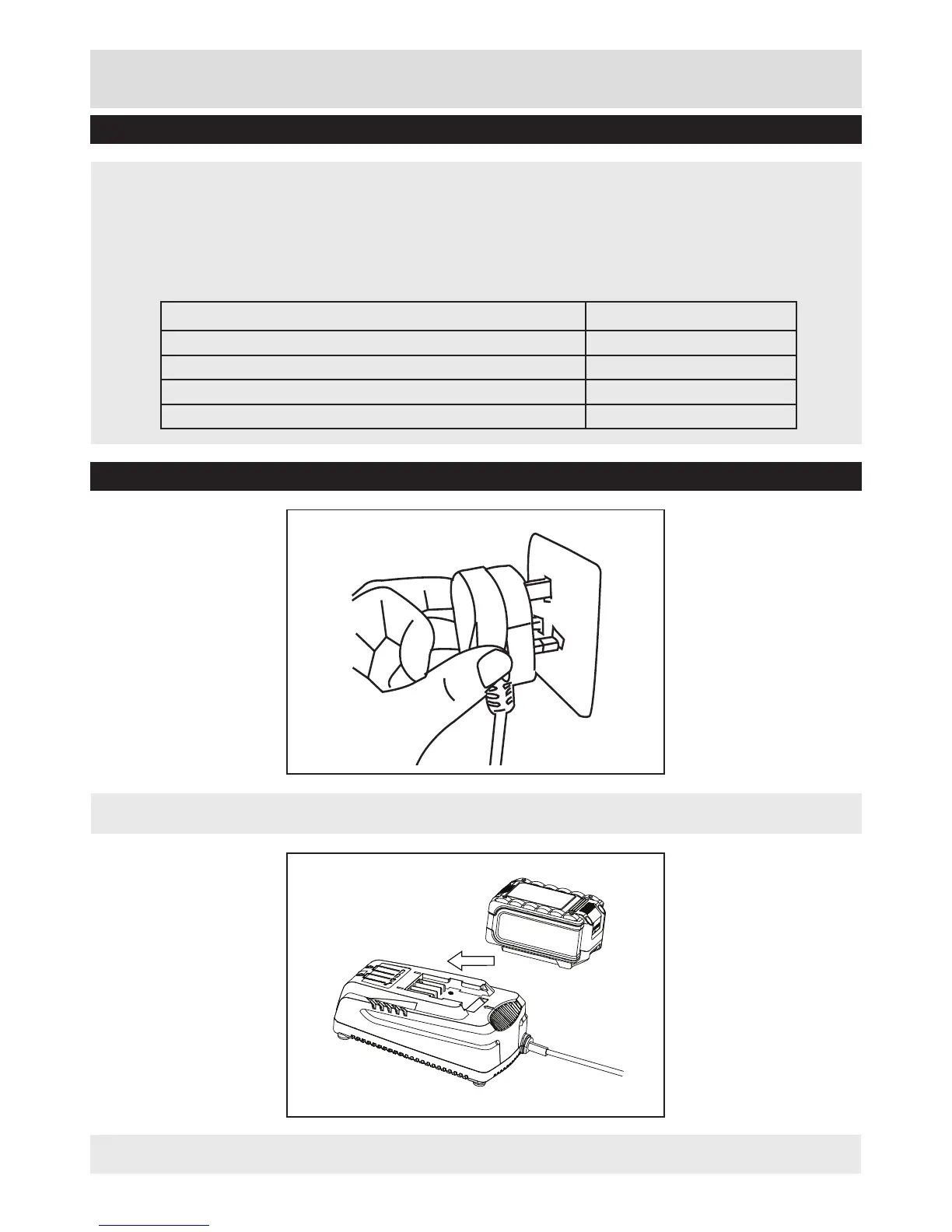 • Mount the battery pack onto the charge by sliding into the guide rails.