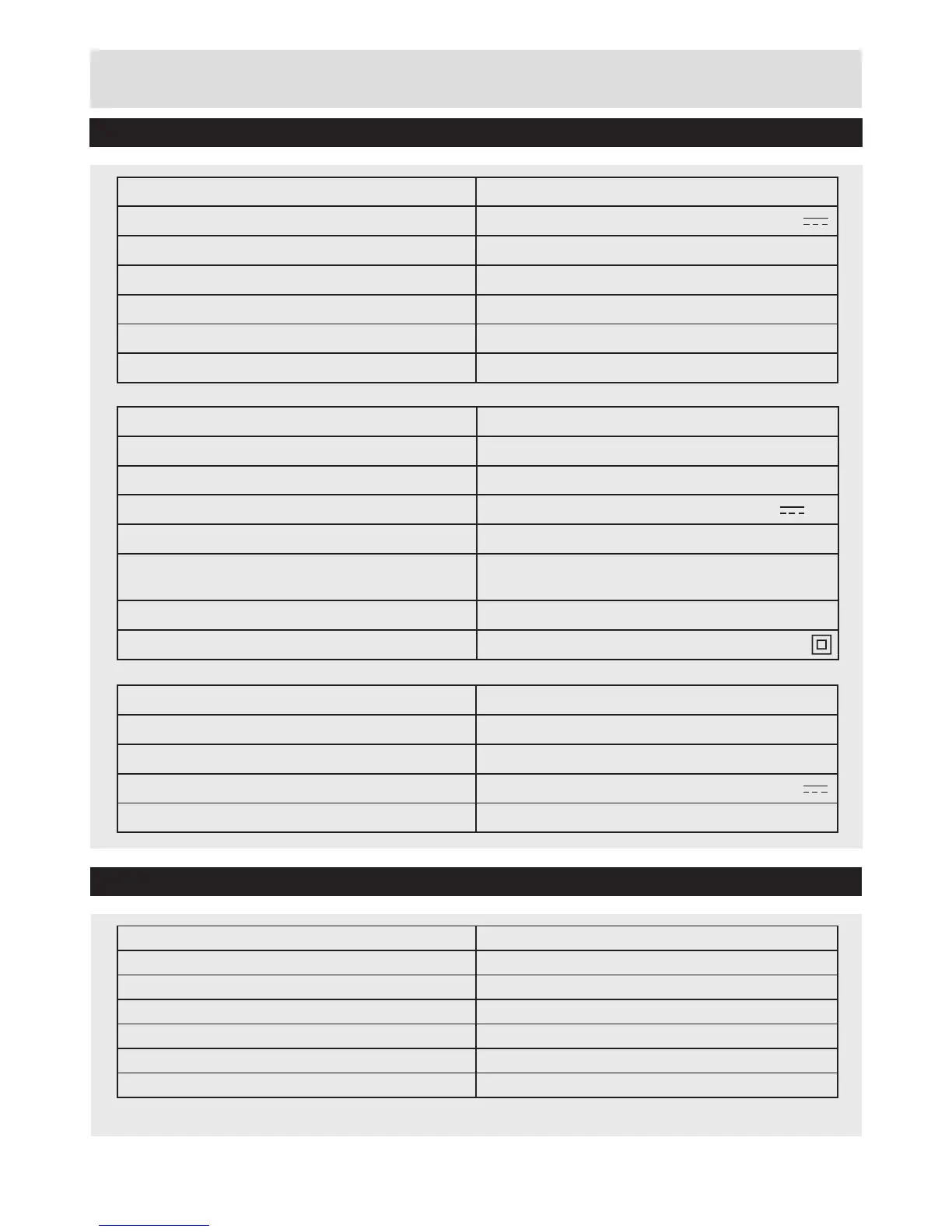 Technical Data Table