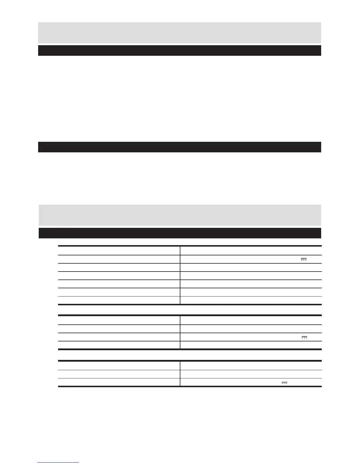 Technical data table