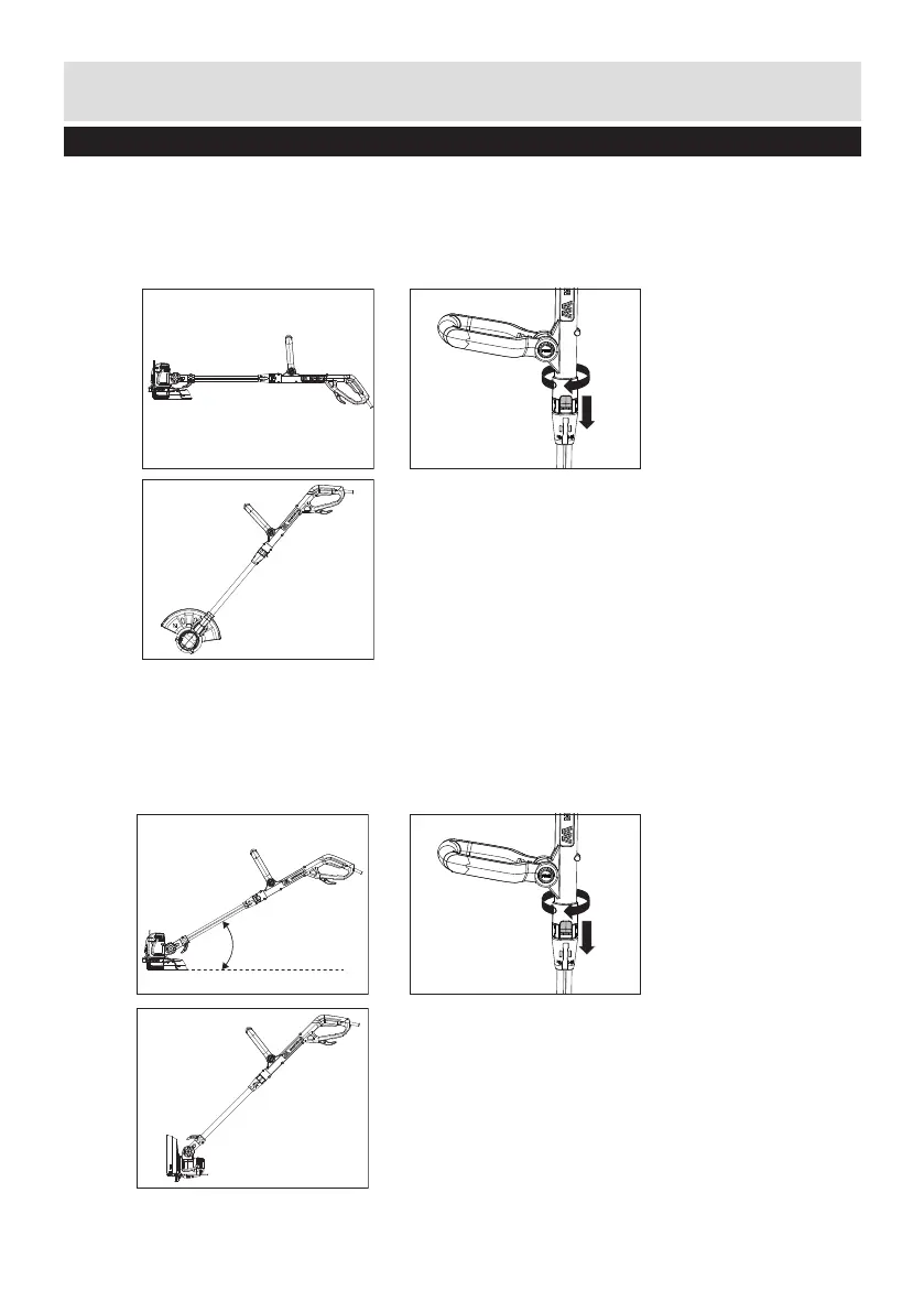 2) Push the handle rotation locking button downward and rotate the main handle clockwise at 180