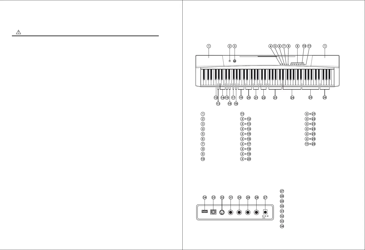 ● Please pull out the plug after performing or when the keyboard is left unused for a long time.