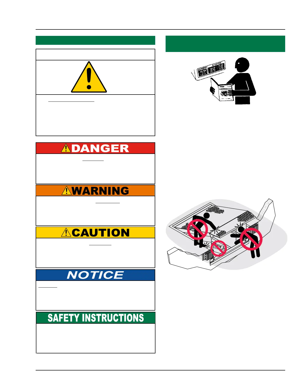 Never remove DANGER, WARNING, or CAUTION