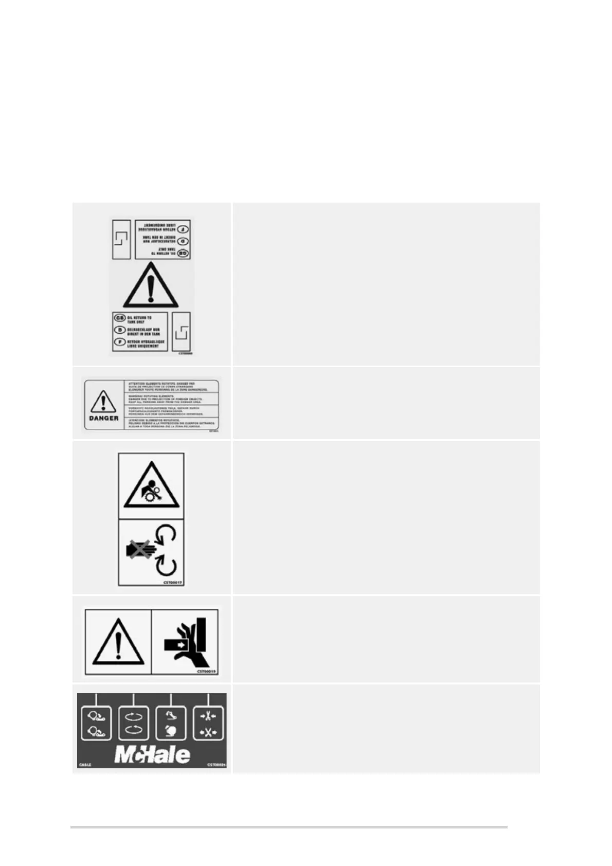 The decals featured on the McHale 995 L+T are displayed with their meanings below: