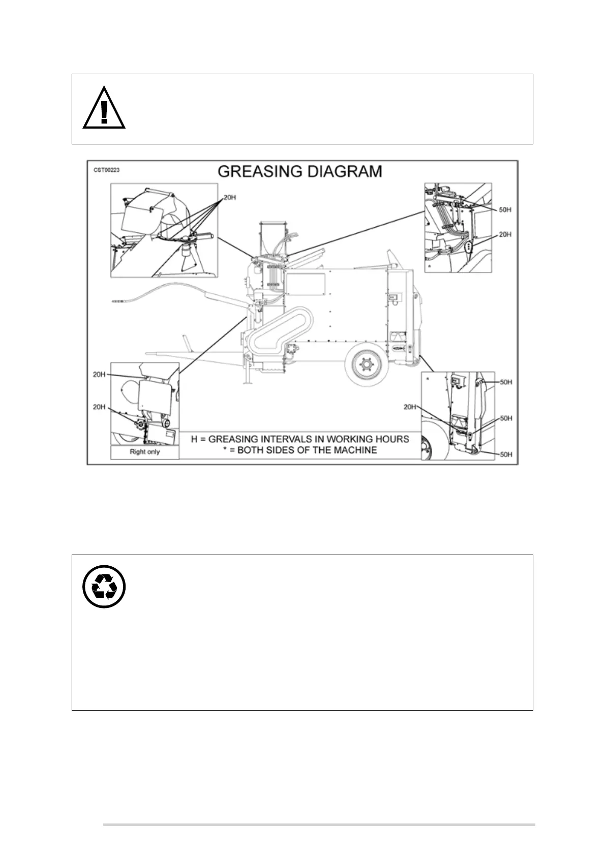 Additional greasing needs to be carried out as shown. This decal is mounted on the