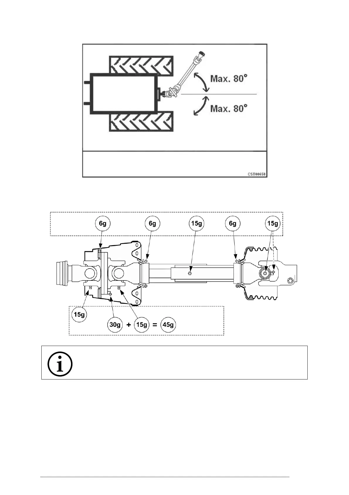 ATTENTION: PTO wide angle joint must never exceed 80 deg.